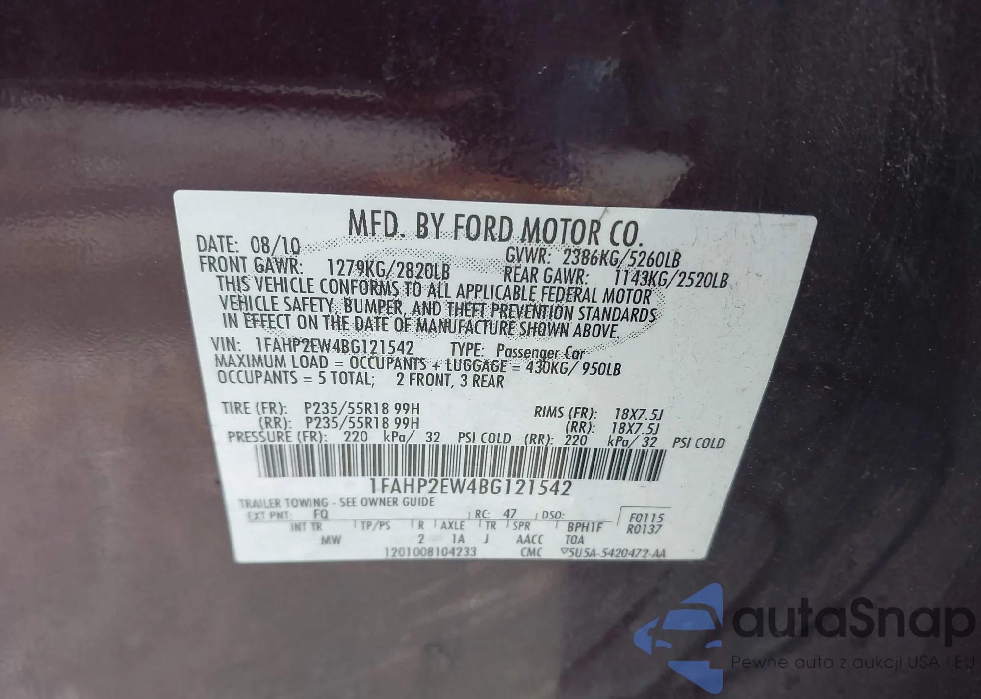 VIN: 1FAHP2EW4BG121542