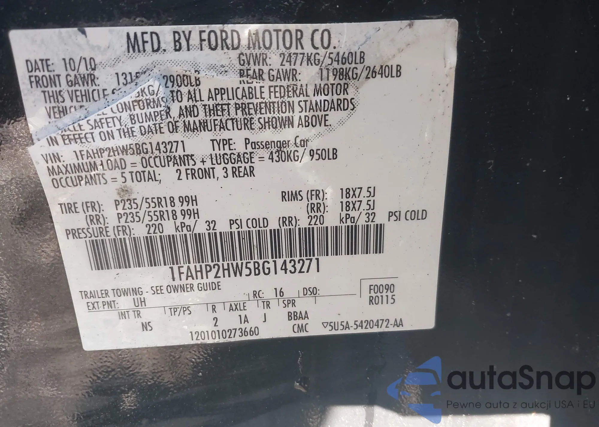 VIN: 1FAHP2HW5BG143271