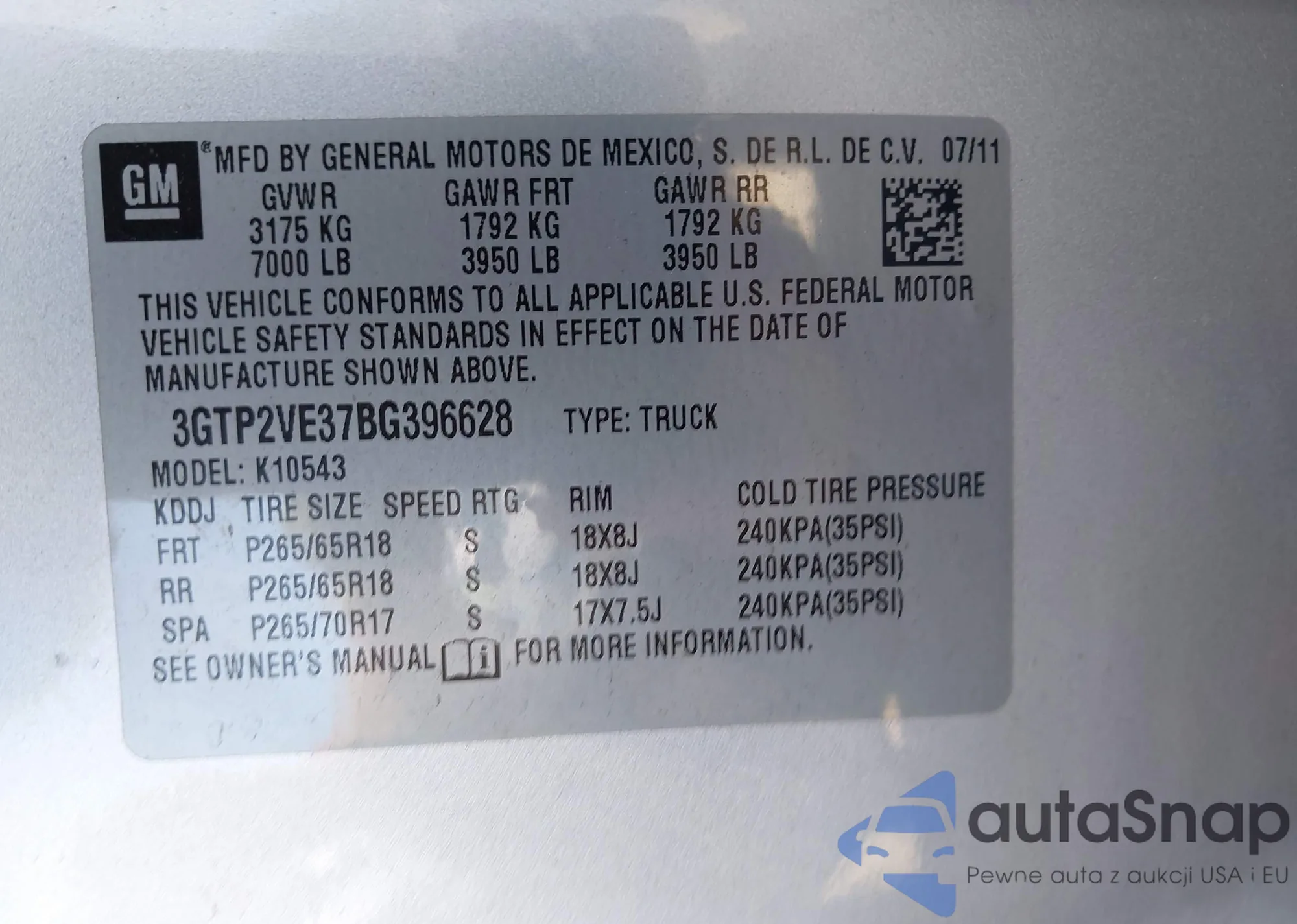 VIN: 3GTP2VE37BG396628