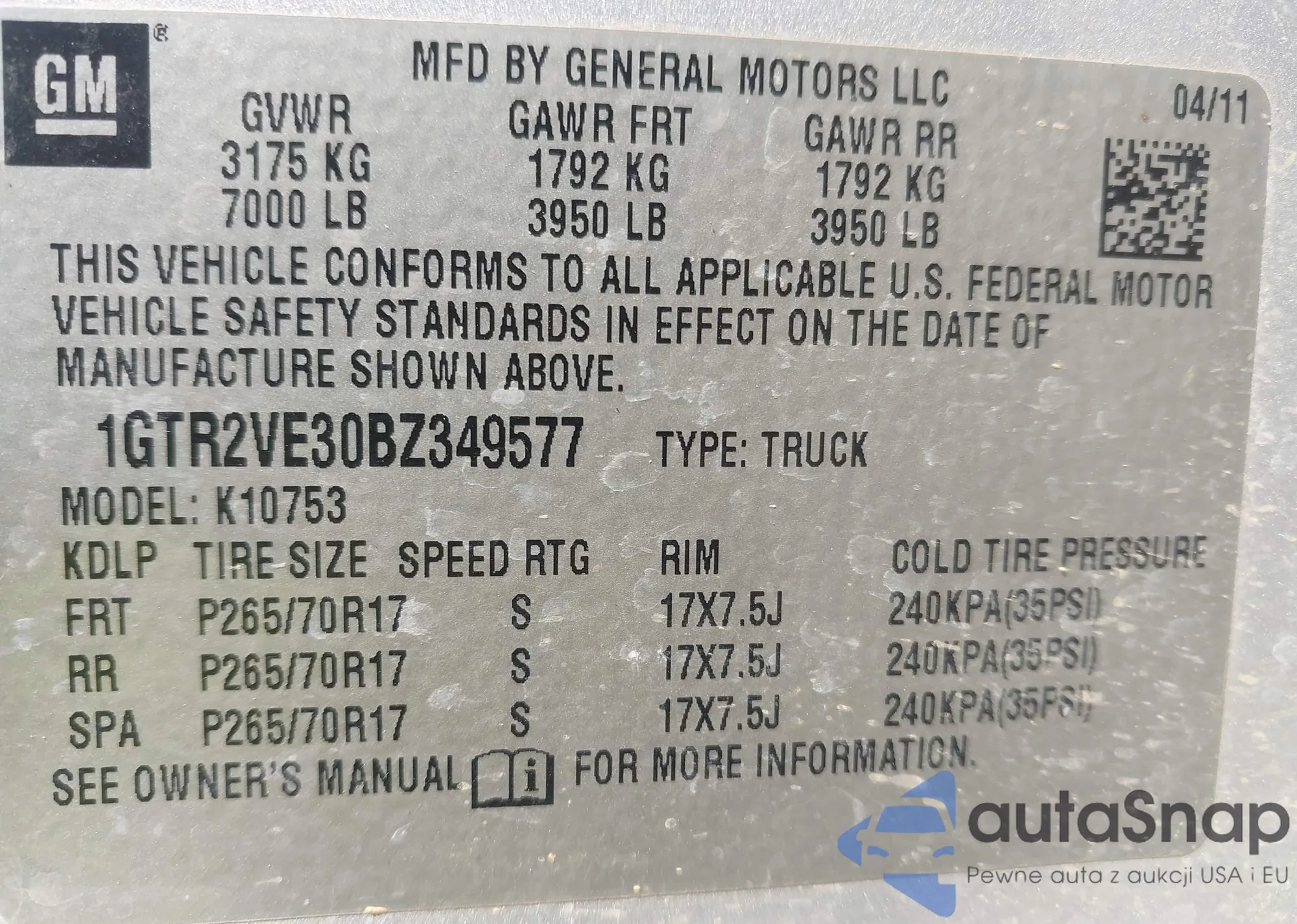 The car GMC Sierra 2011 (VIN 1GTR2VE30BZ349577) has not been auctioned before. The documents are clean, and the mileage matches or is below the market average. Sold by an insurance company – we recommend purchase. Delivery to the port will take approx. 6–8 weeks.