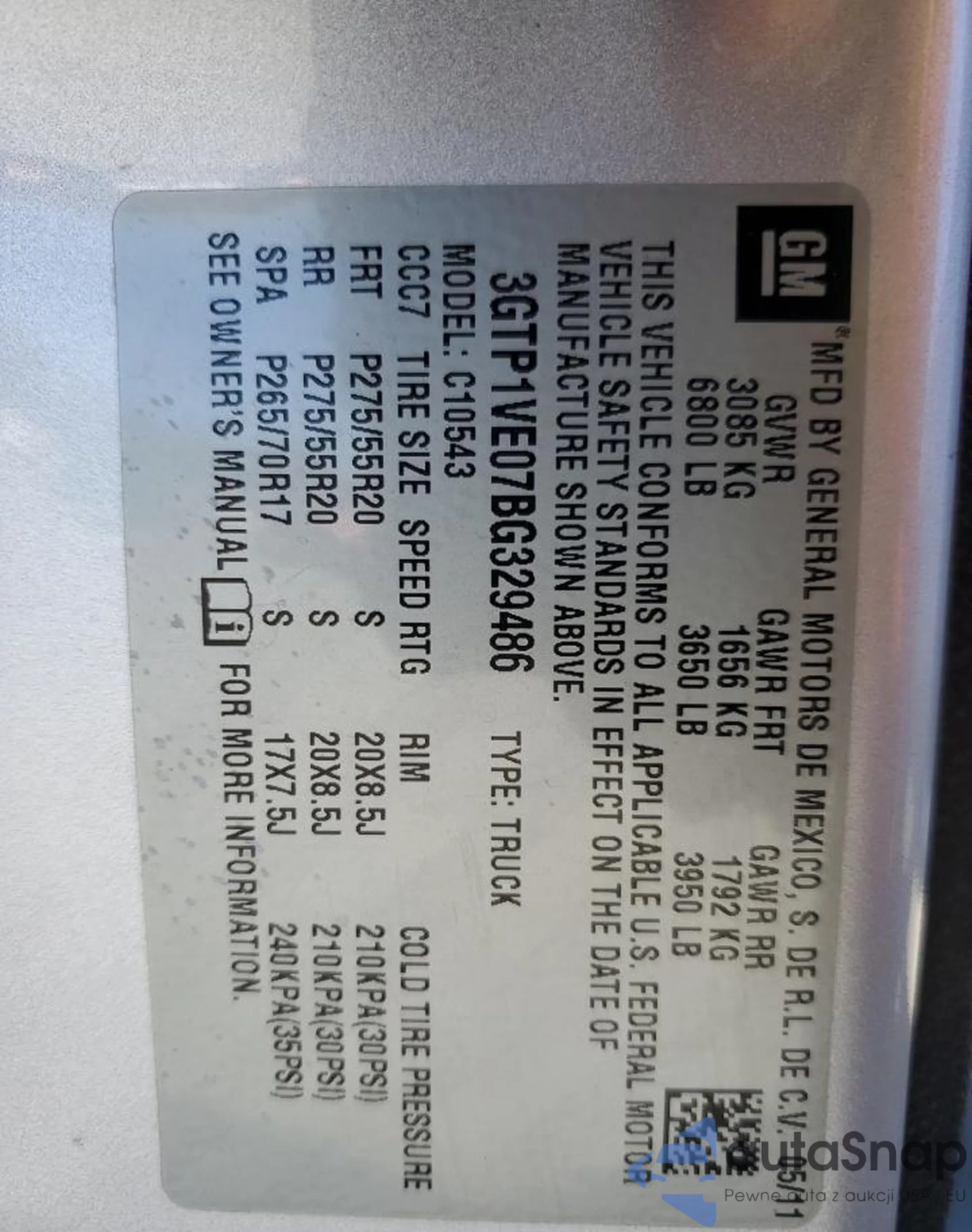 VIN: 3GTP1VE07BG329486