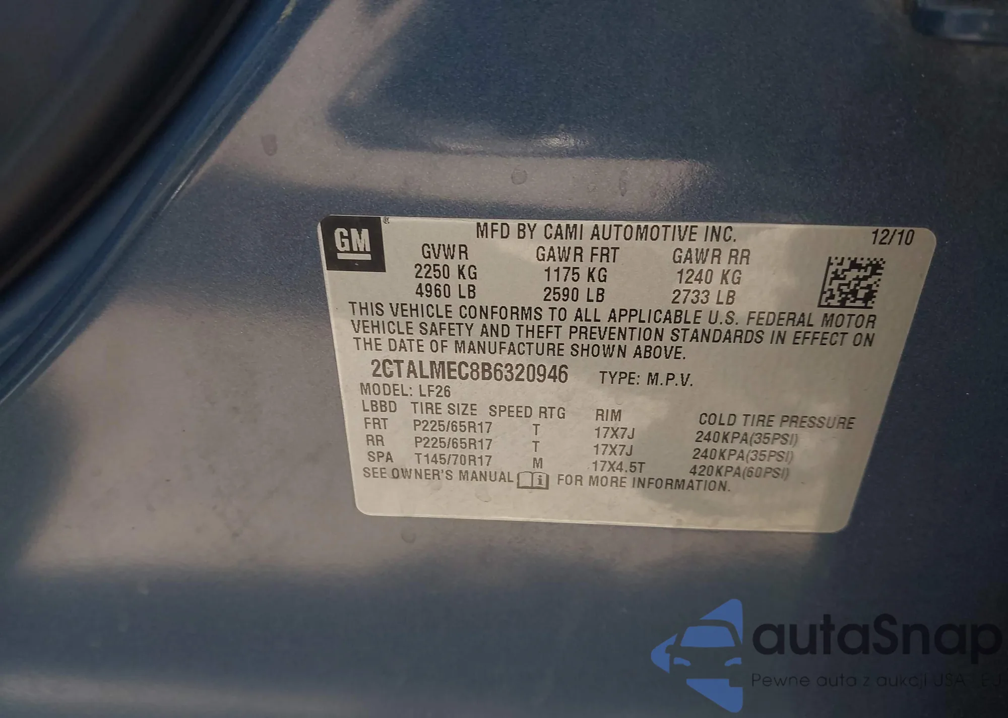 • VIN: 2CTALMEC8B6320946