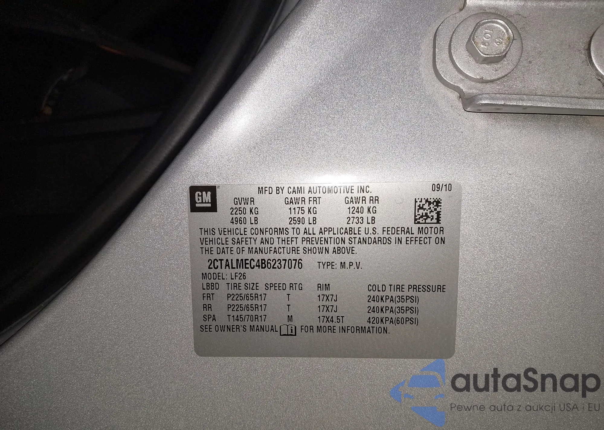 The car GMC Terrain 2011 (VIN 2CTALMEC4B6237076) has not been auctioned before. The documents are clean, and the mileage matches or is below the market average. Sold by an insurance company – we recommend purchase. Delivery to the port will take approx. 6–8 weeks.