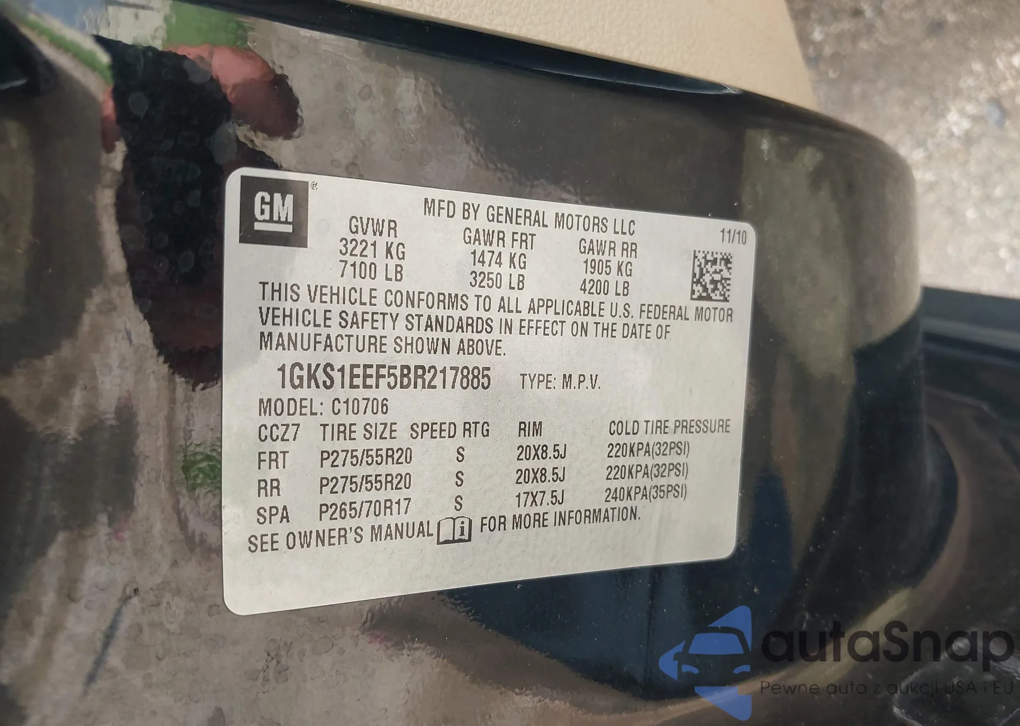VIN: 1GKS1EEF5BR217885