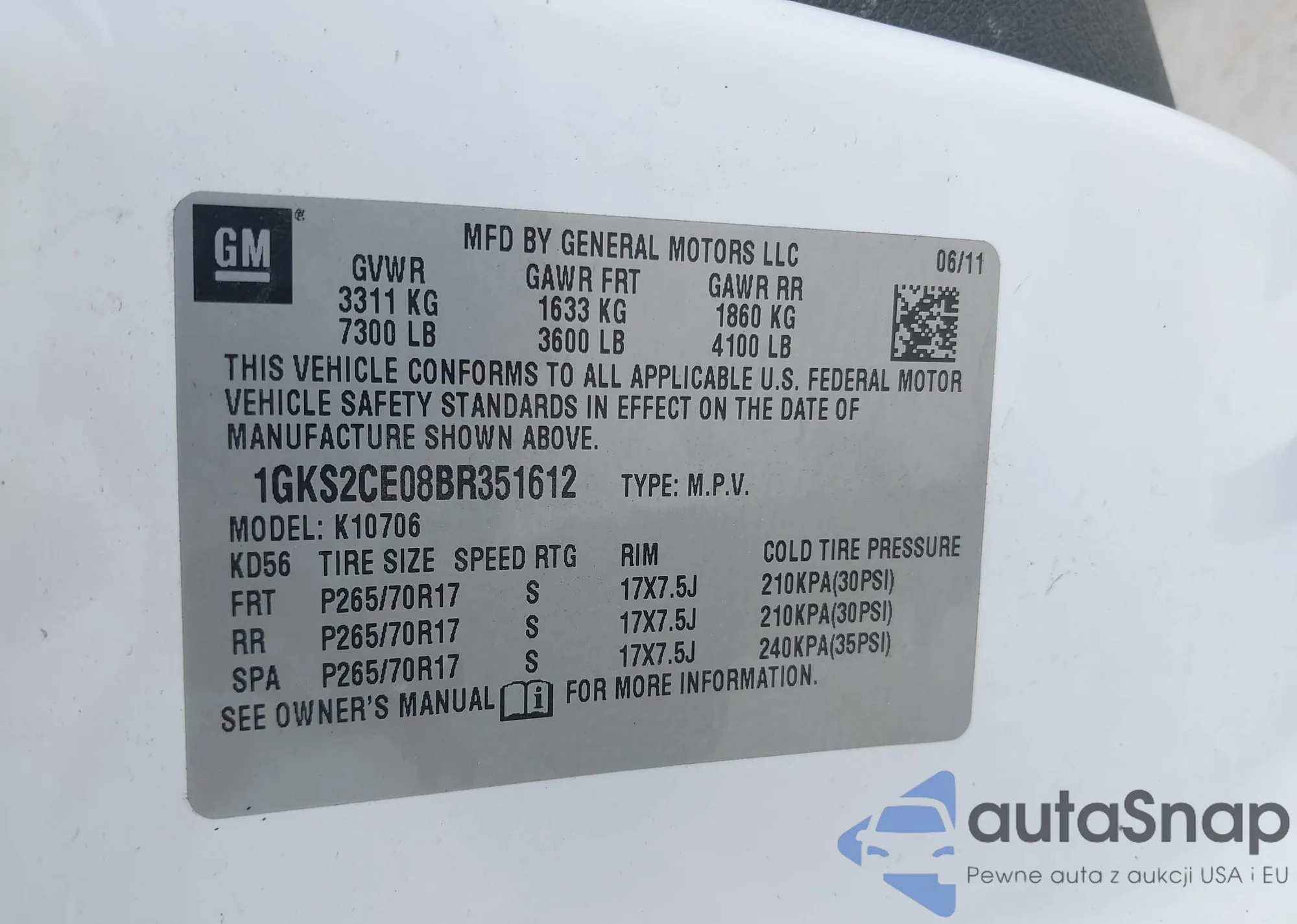 VIN: 1GKS2CE08BR351612
