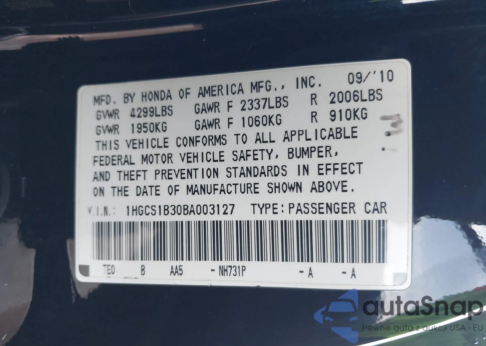 VIN: 1HGCS1B30BA003127