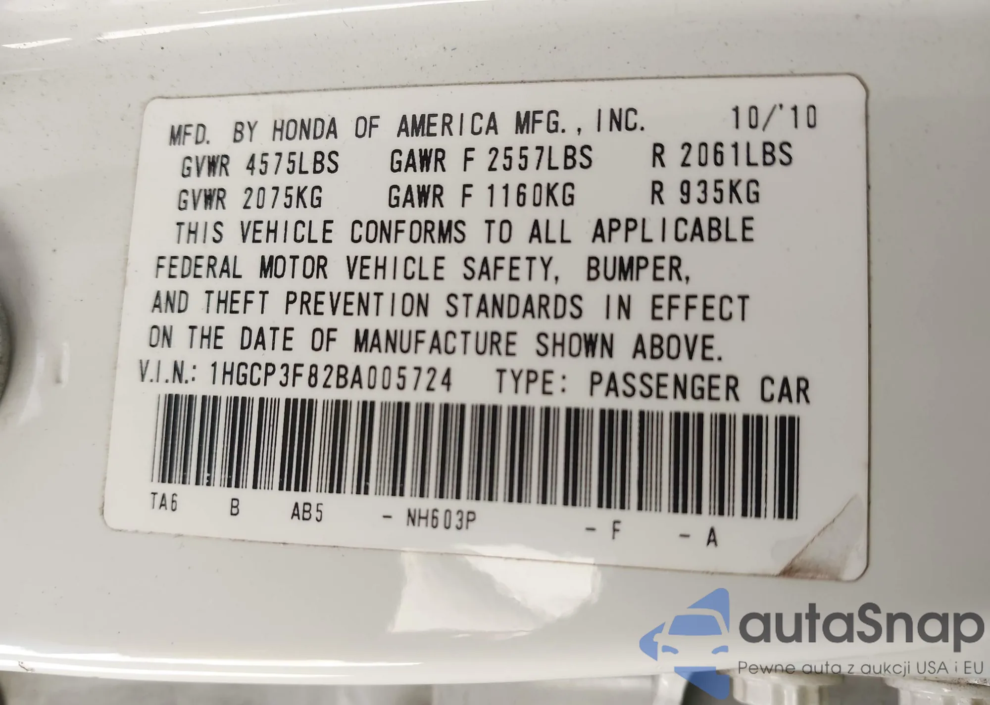 VIN: 1HGCP3F82BA005724