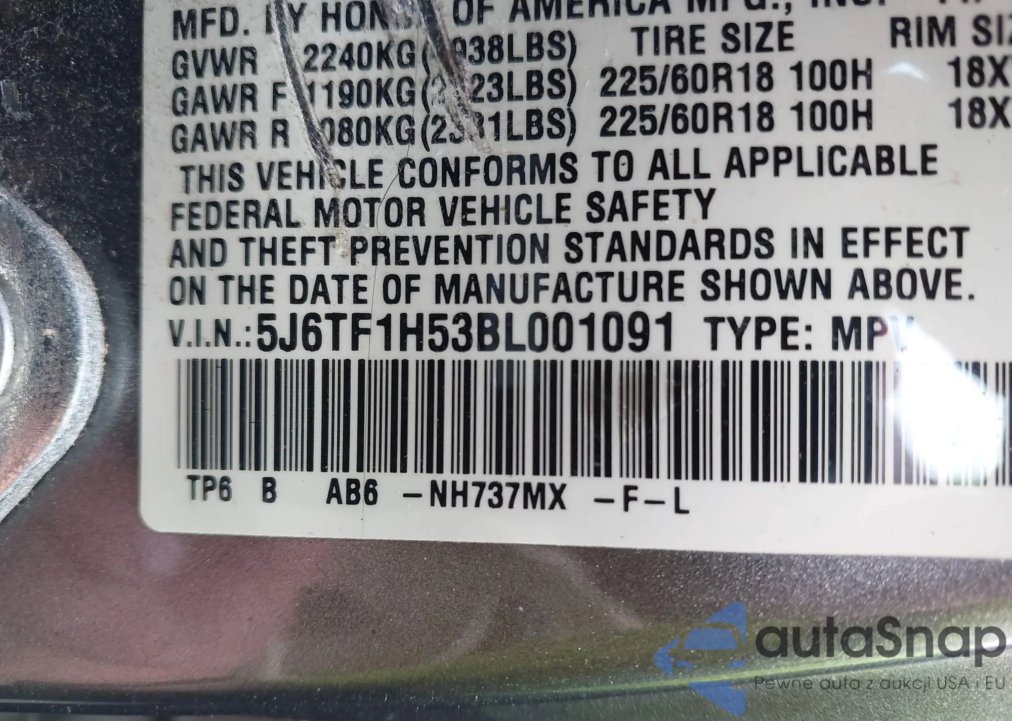 VIN: 5J6TF1H53BL001091