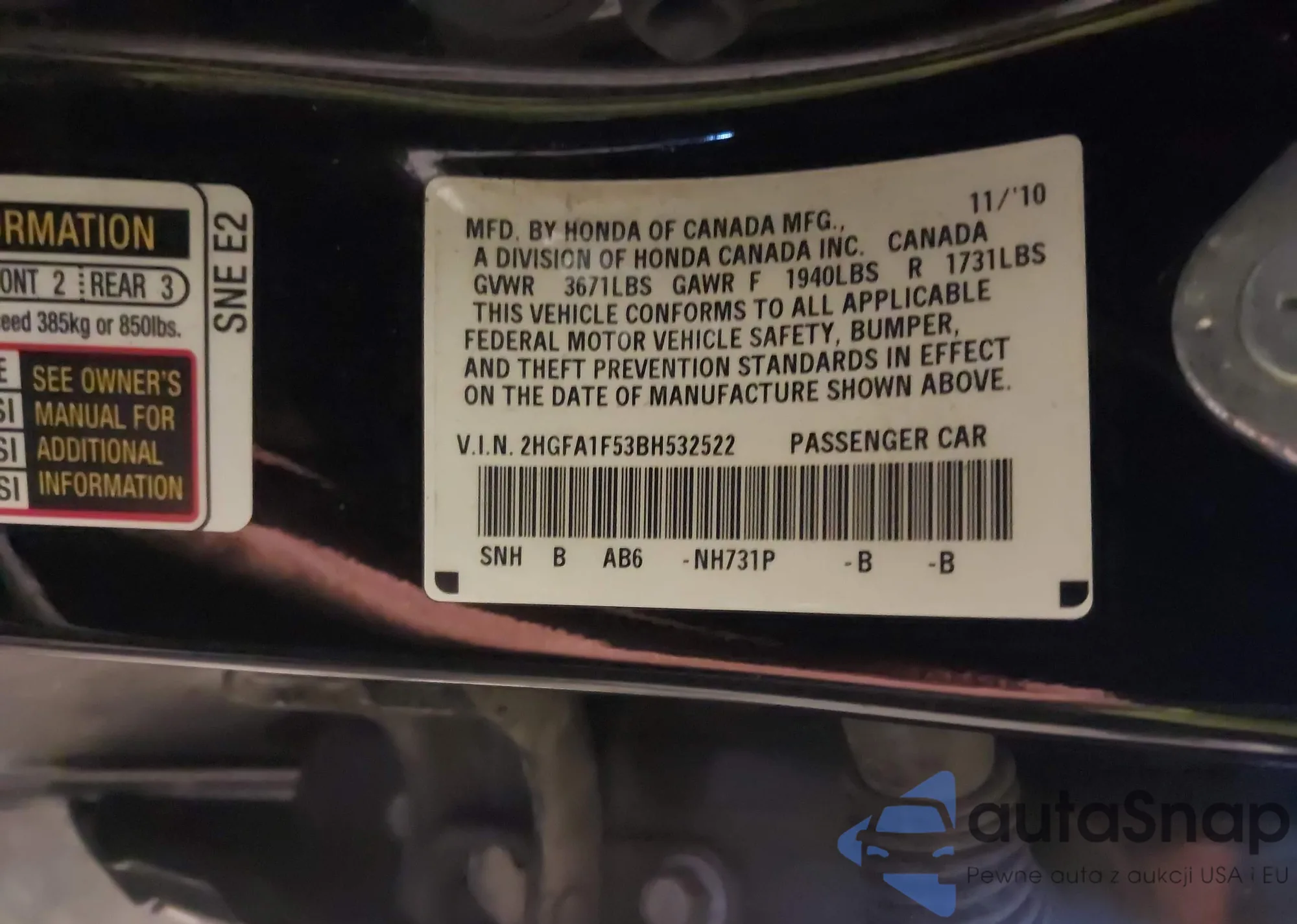 • VIN: 2HGFA1F53BH532522