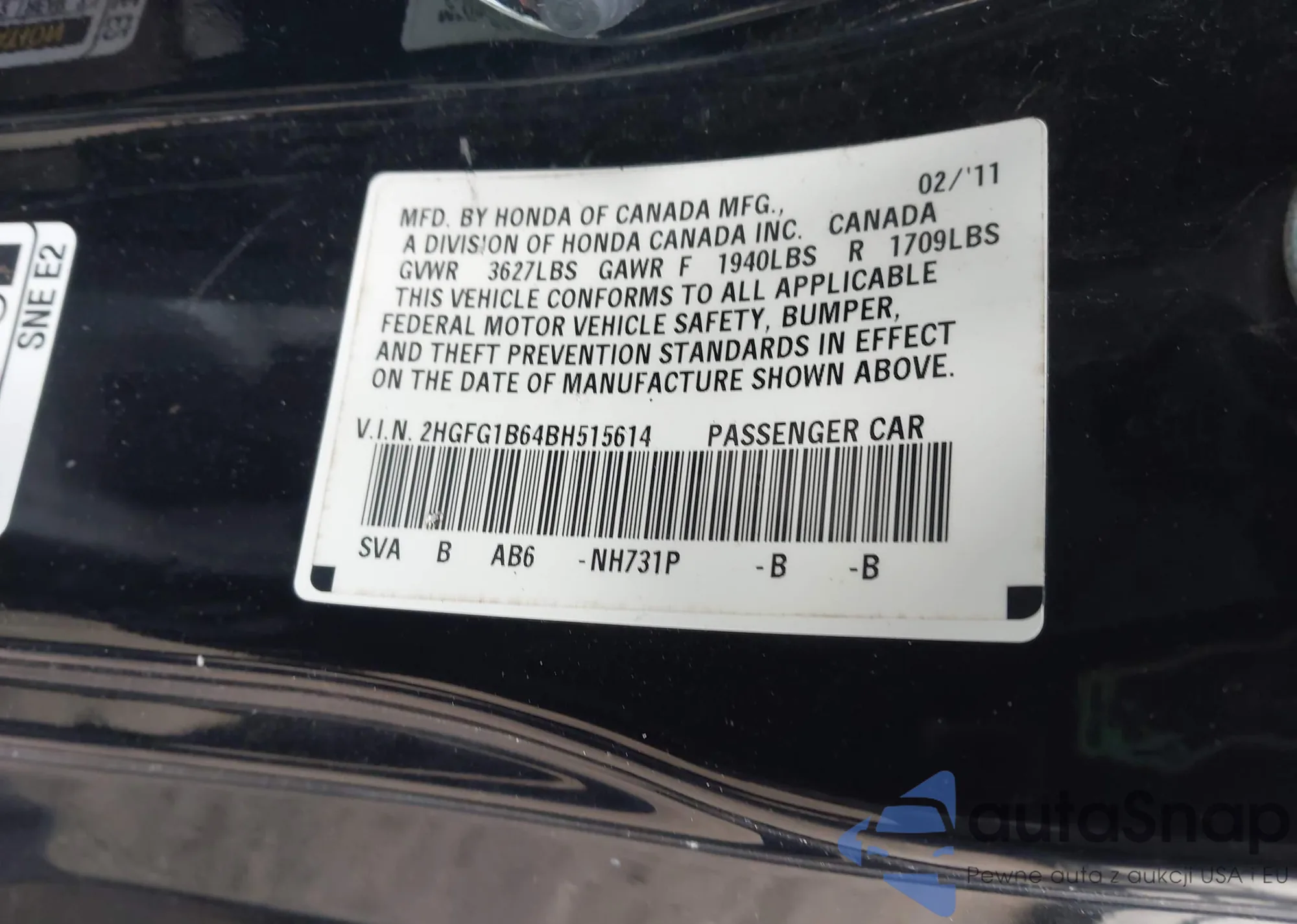 The car Honda Civic 2011 (VIN 2HGFG1B64BH515614) has not been auctioned before. The documents are clean, and the mileage matches or is below the market average. Sold by an insurance company – we recommend purchase. Delivery to the port will take approx. 6–8 weeks.