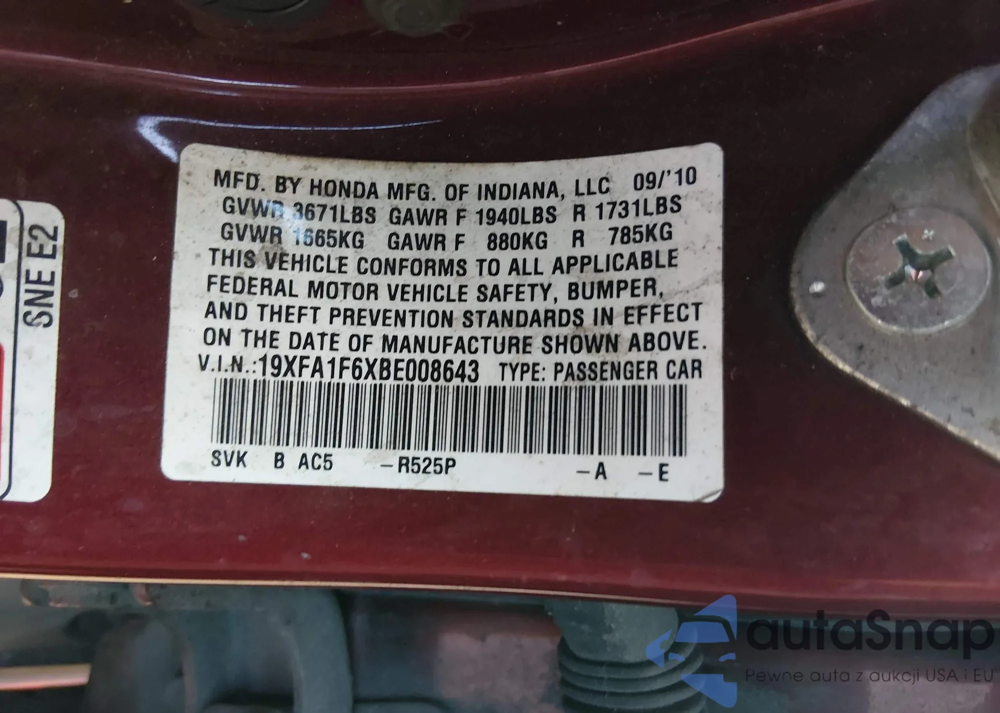 VIN: 19XFA1F6XBE008643
