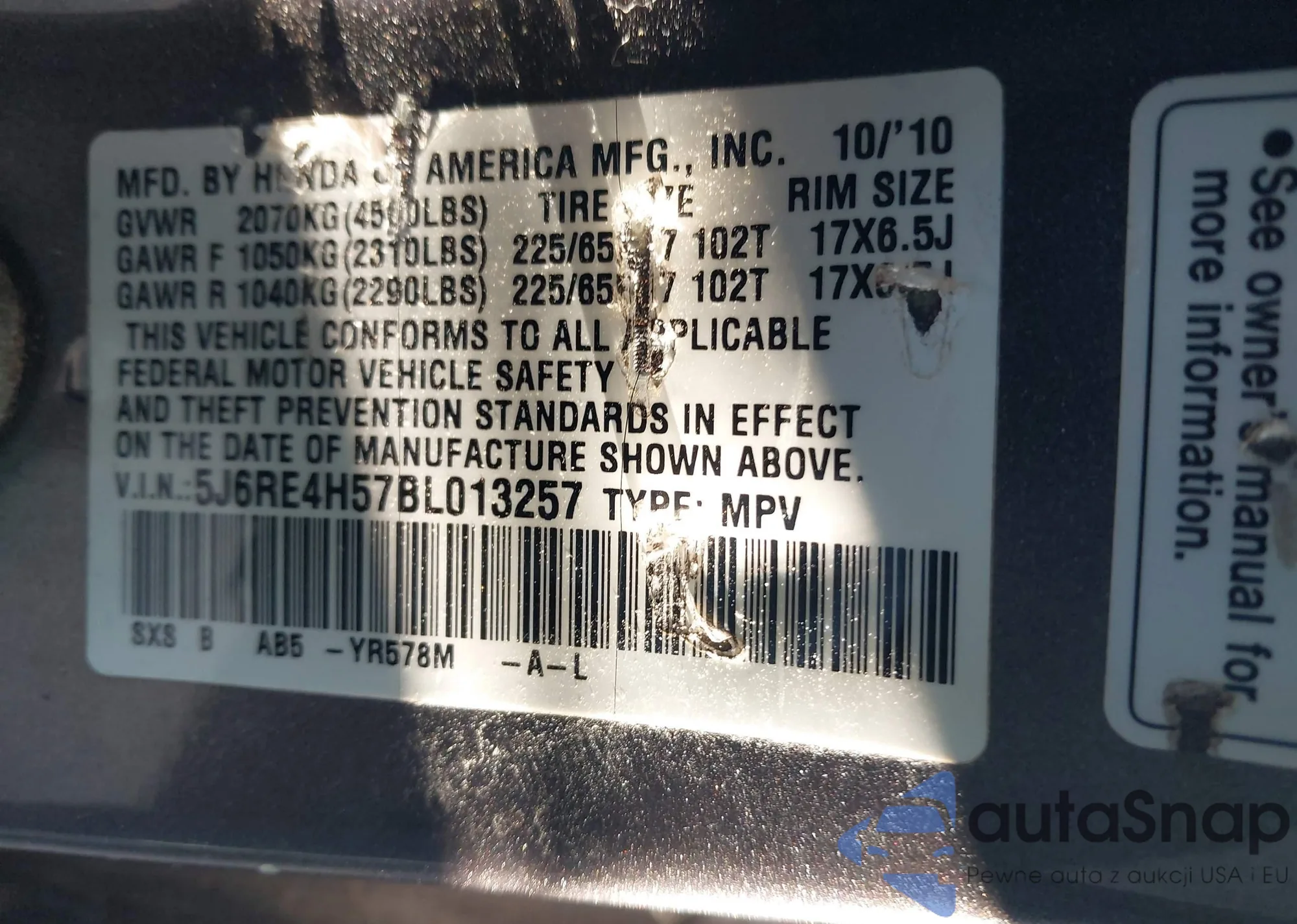 VIN: 5J6RE4H57BL013257