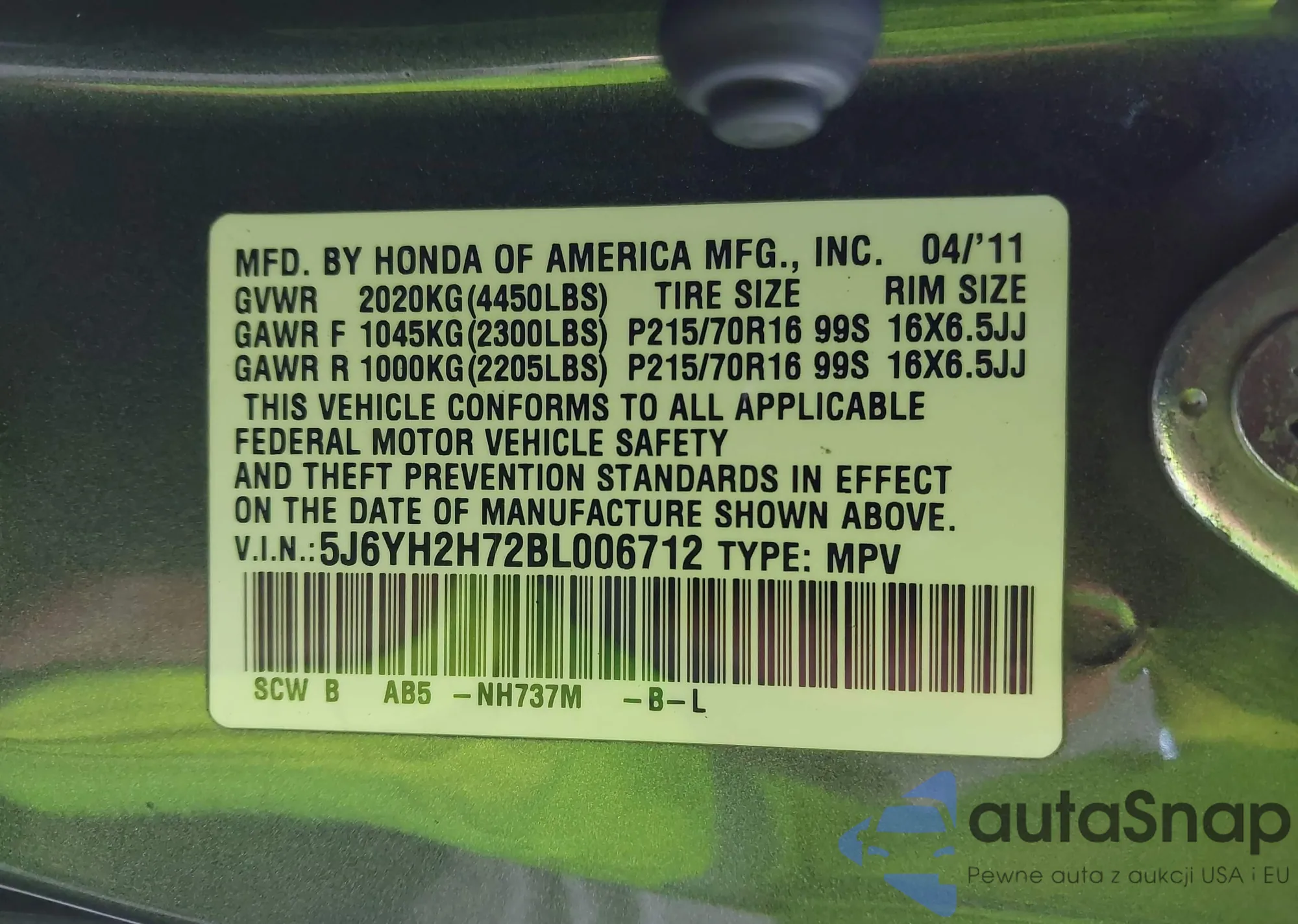 The car Honda Element 2011 (VIN 5J6YH2H72BL006712) has already been auctioned 1 times and/or is sold by an unverified seller. We recommend checking the Carfax report and confirming registration possibilities before purchase.