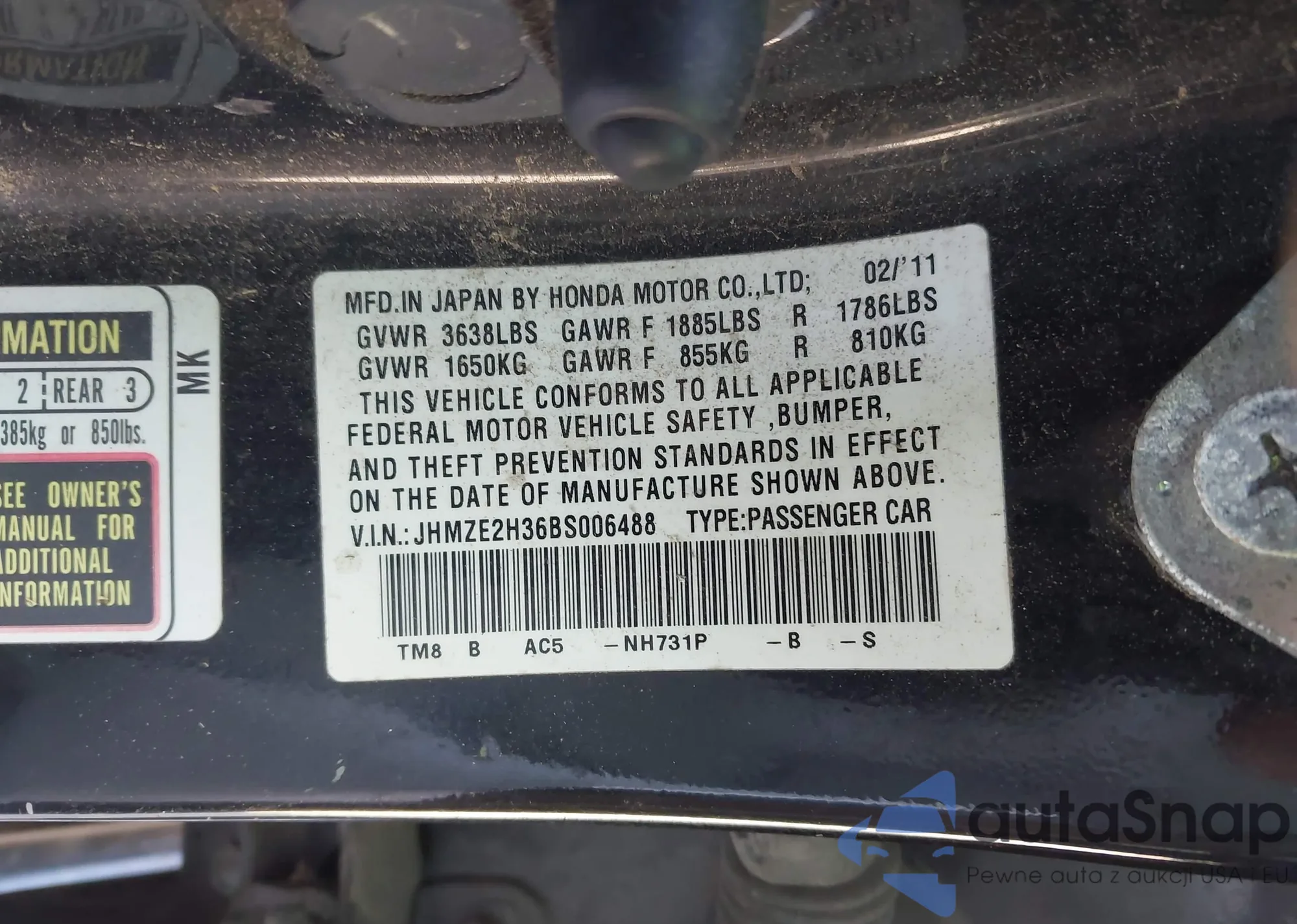 • VIN: JHMZE2H36BS006488