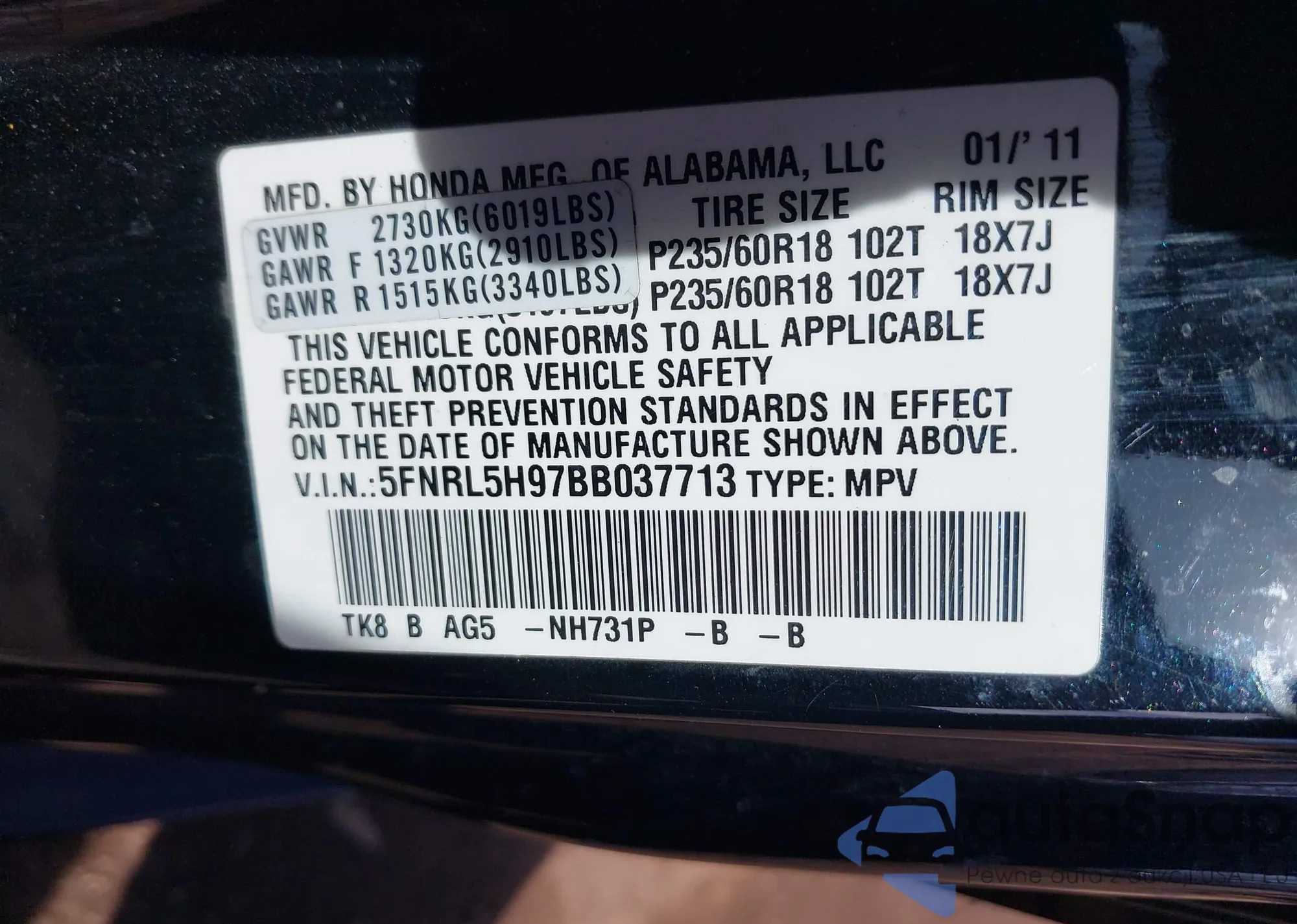 VIN: 5FNRL5H97BB037713