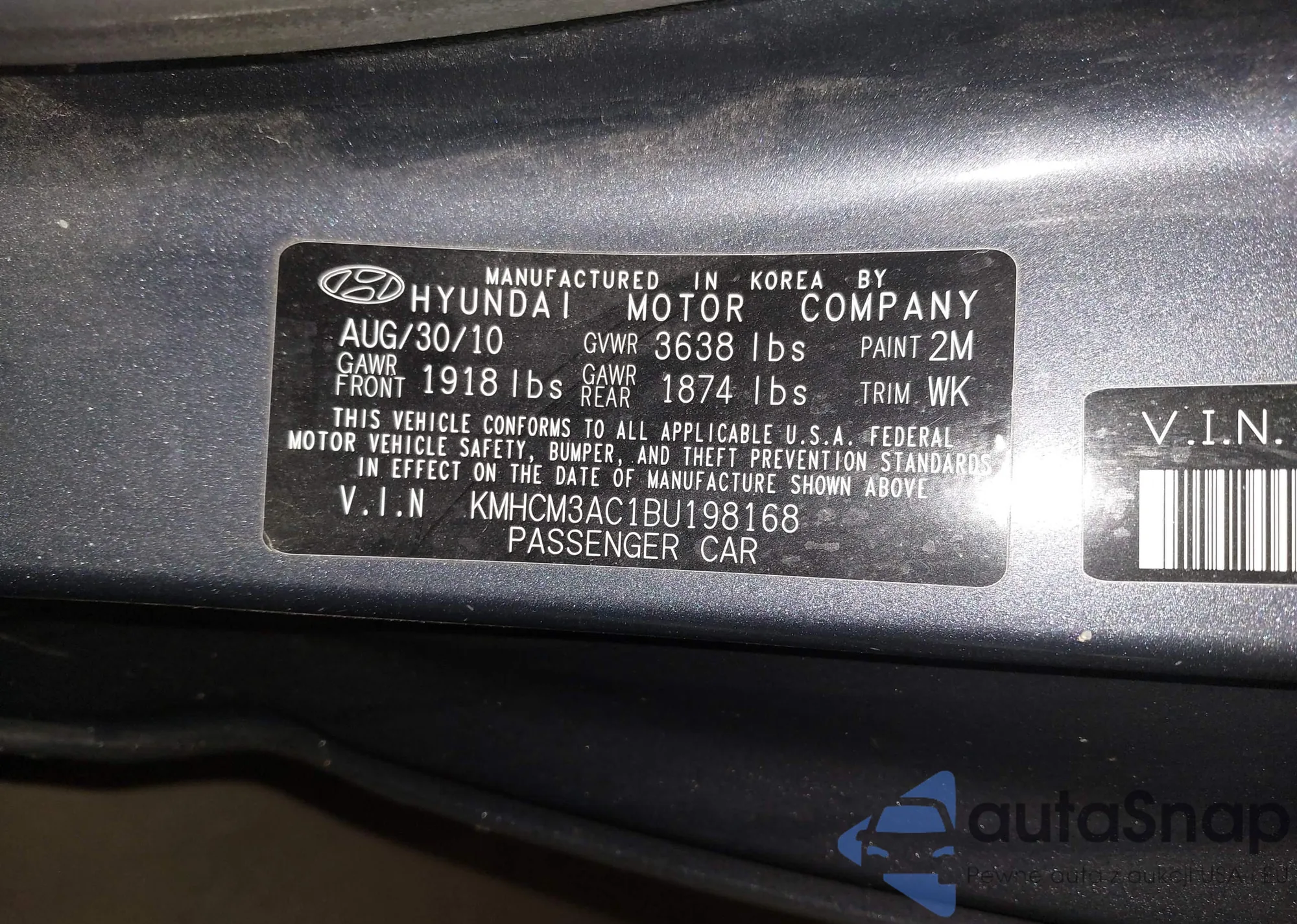 The car Hyundai Accent 2011 (VIN KMHCM3AC1BU198168) is sold by an unverified seller. We recommend checking the Carfax report and confirming registration possibilities before purchase.