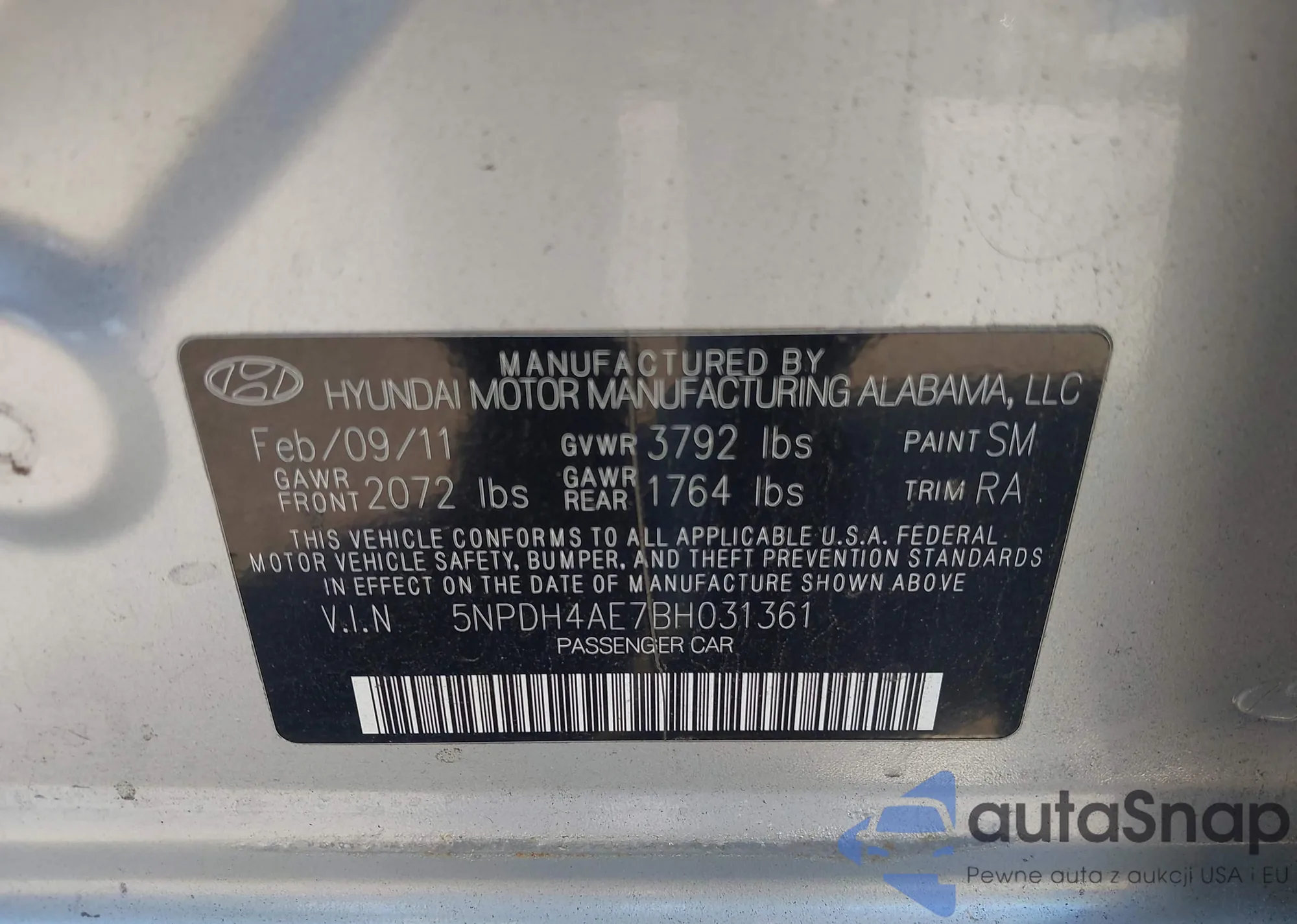 VIN: 5NPDH4AE7BH031361