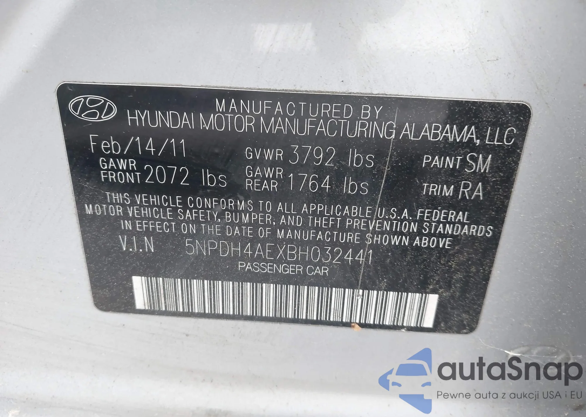 VIN: 5NPDH4AEXBH032441