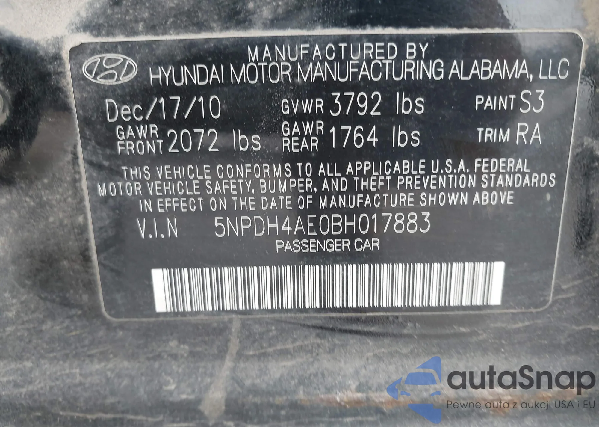 VIN: 5NPDH4AE0BH017883