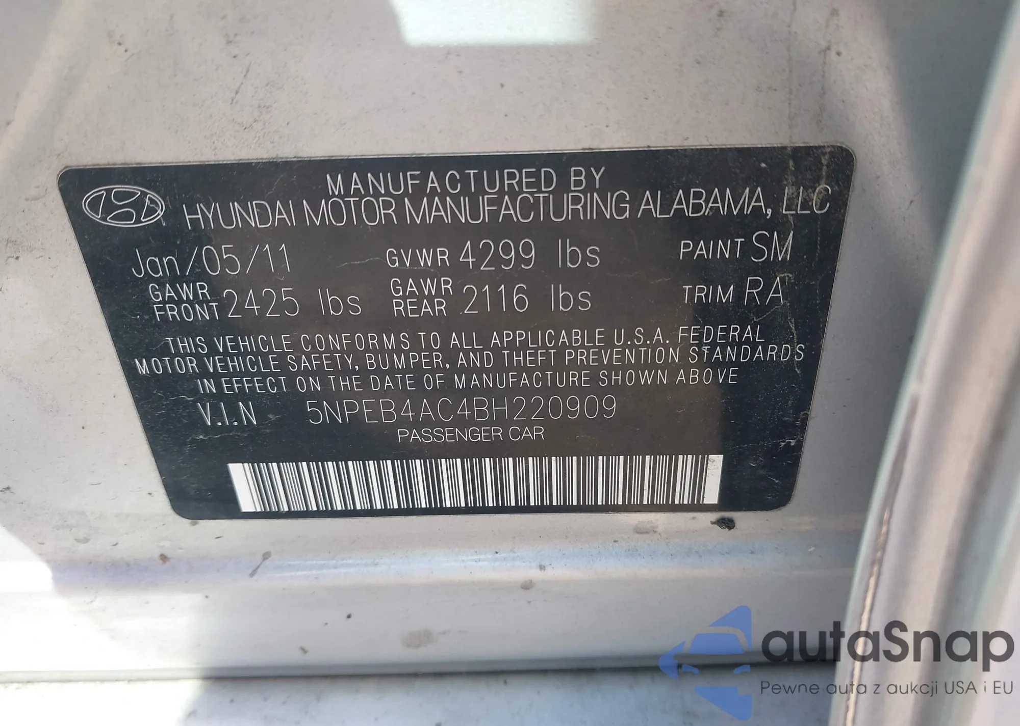 VIN: 5NPEB4AC4BH220909