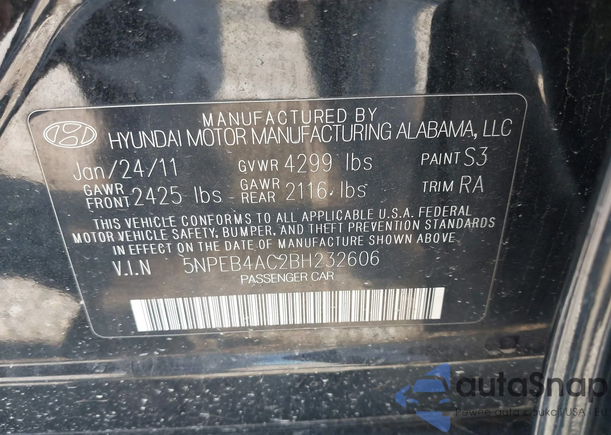 VIN: 5NPEB4AC2BH232606