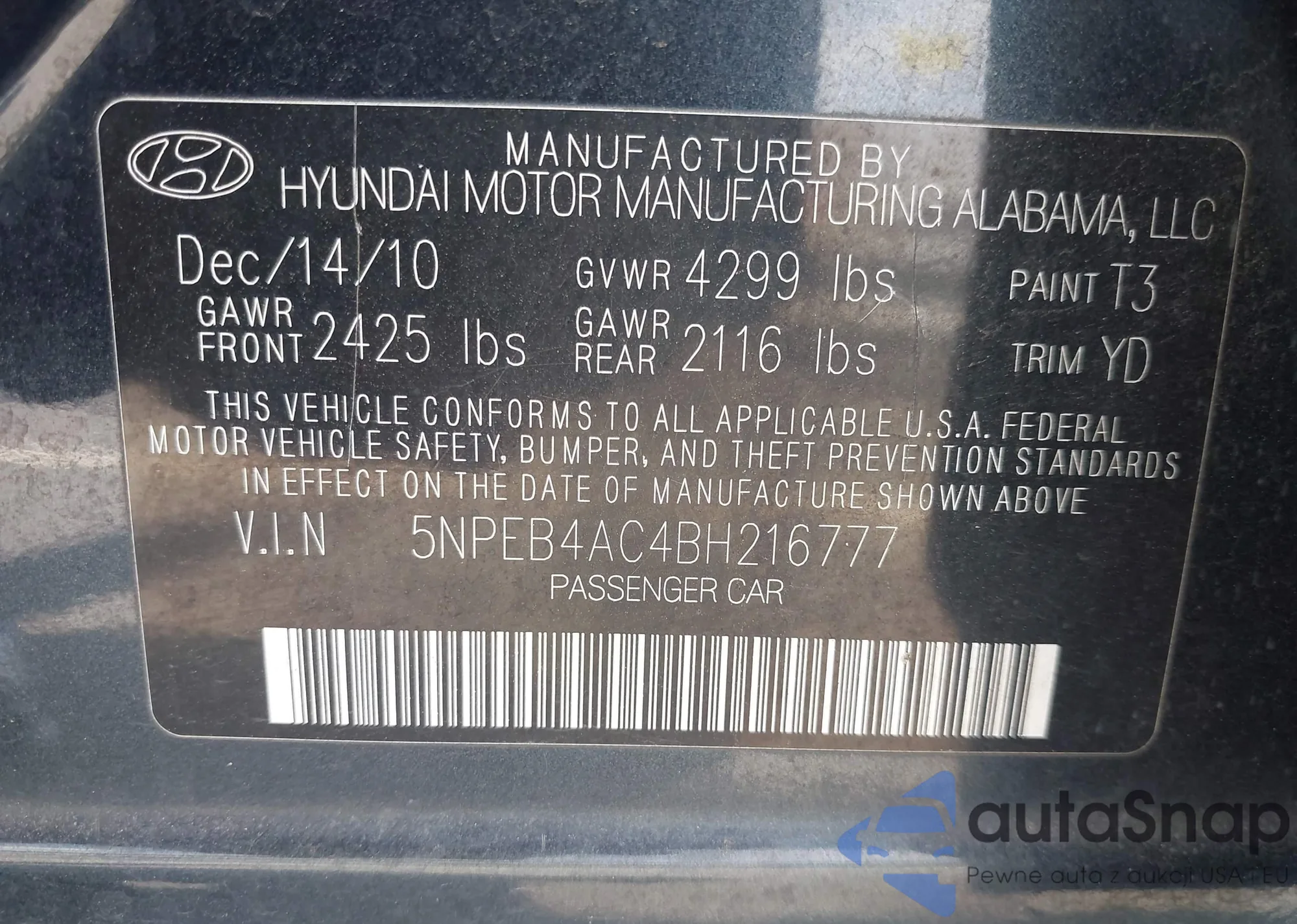 VIN: 5NPEB4AC4BH216777