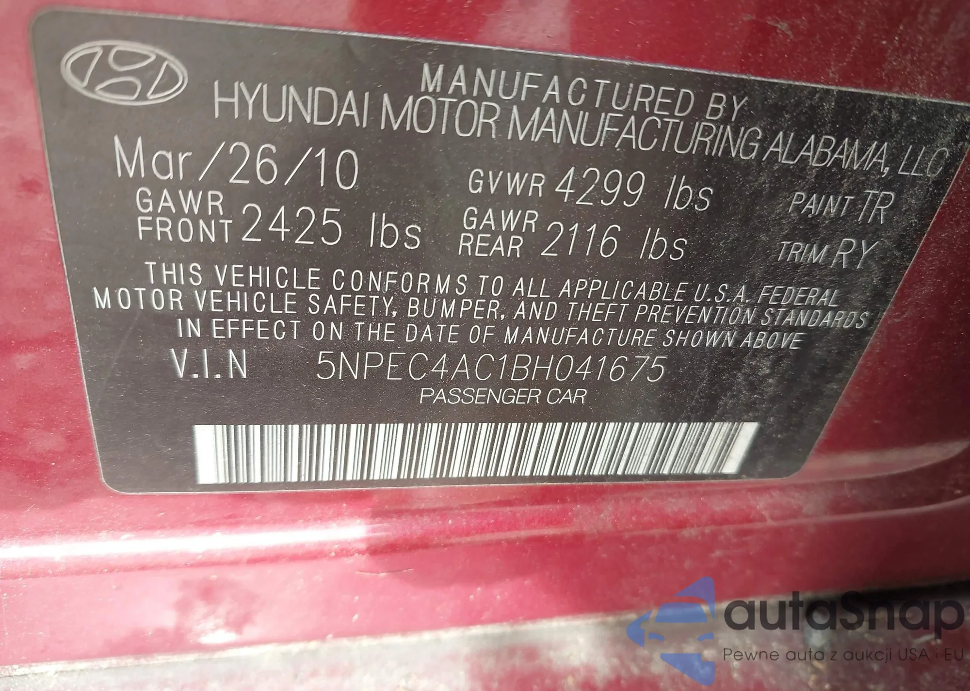 Hyundai Sonata 2011 – Vehicle History (Sold at IAAI)
