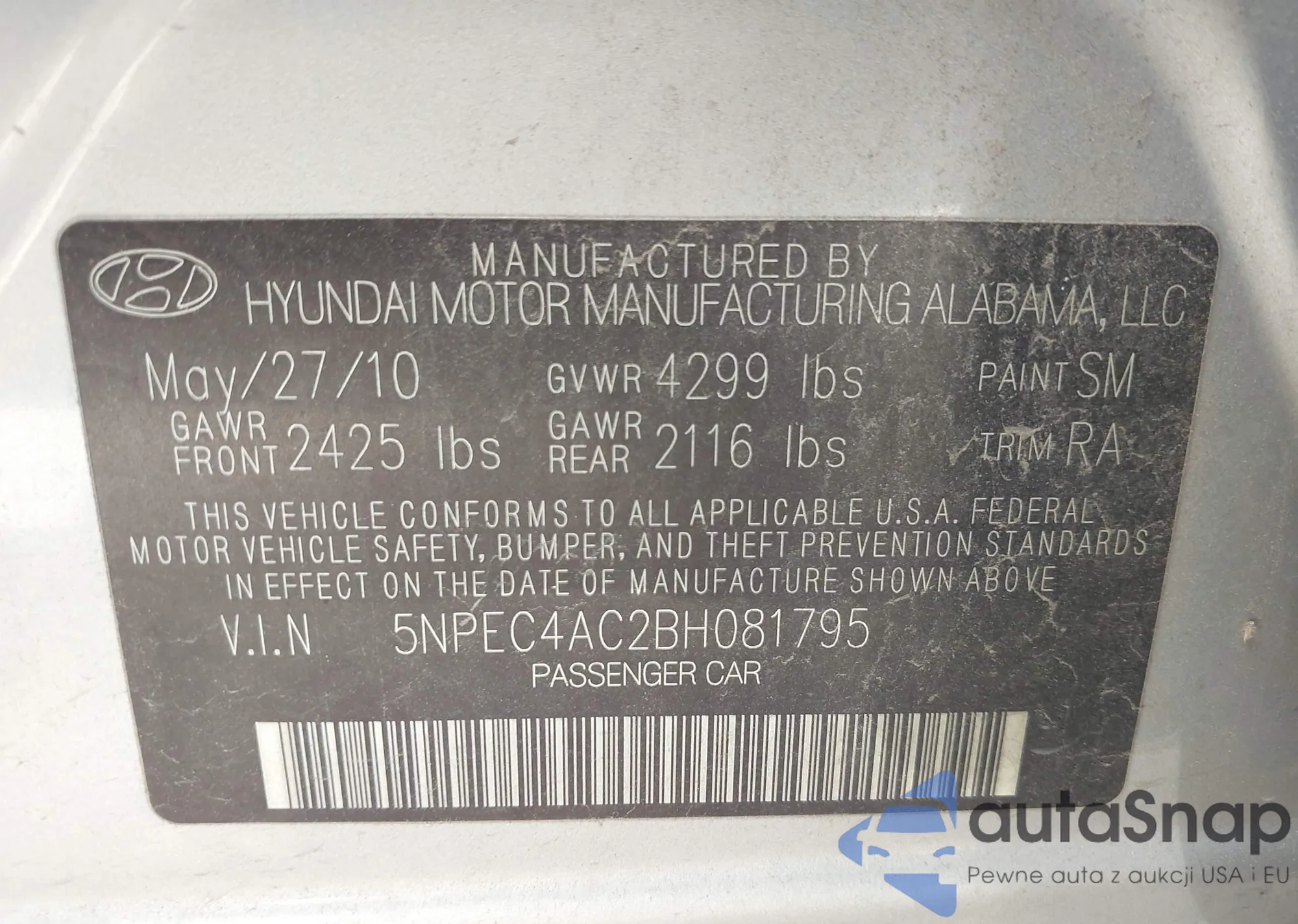 VIN: 5NPEC4AC2BH081795