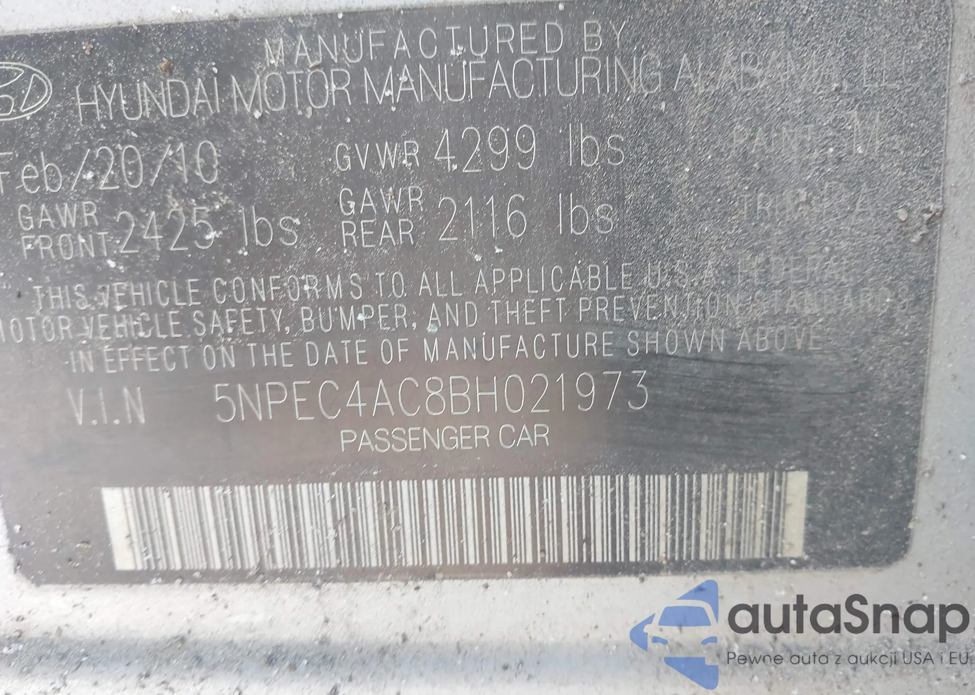 The car Hyundai Sonata 2011 (VIN 5NPEC4AC8BH021973) is sold by an unverified seller. We recommend checking the Carfax report and confirming registration possibilities before purchase.