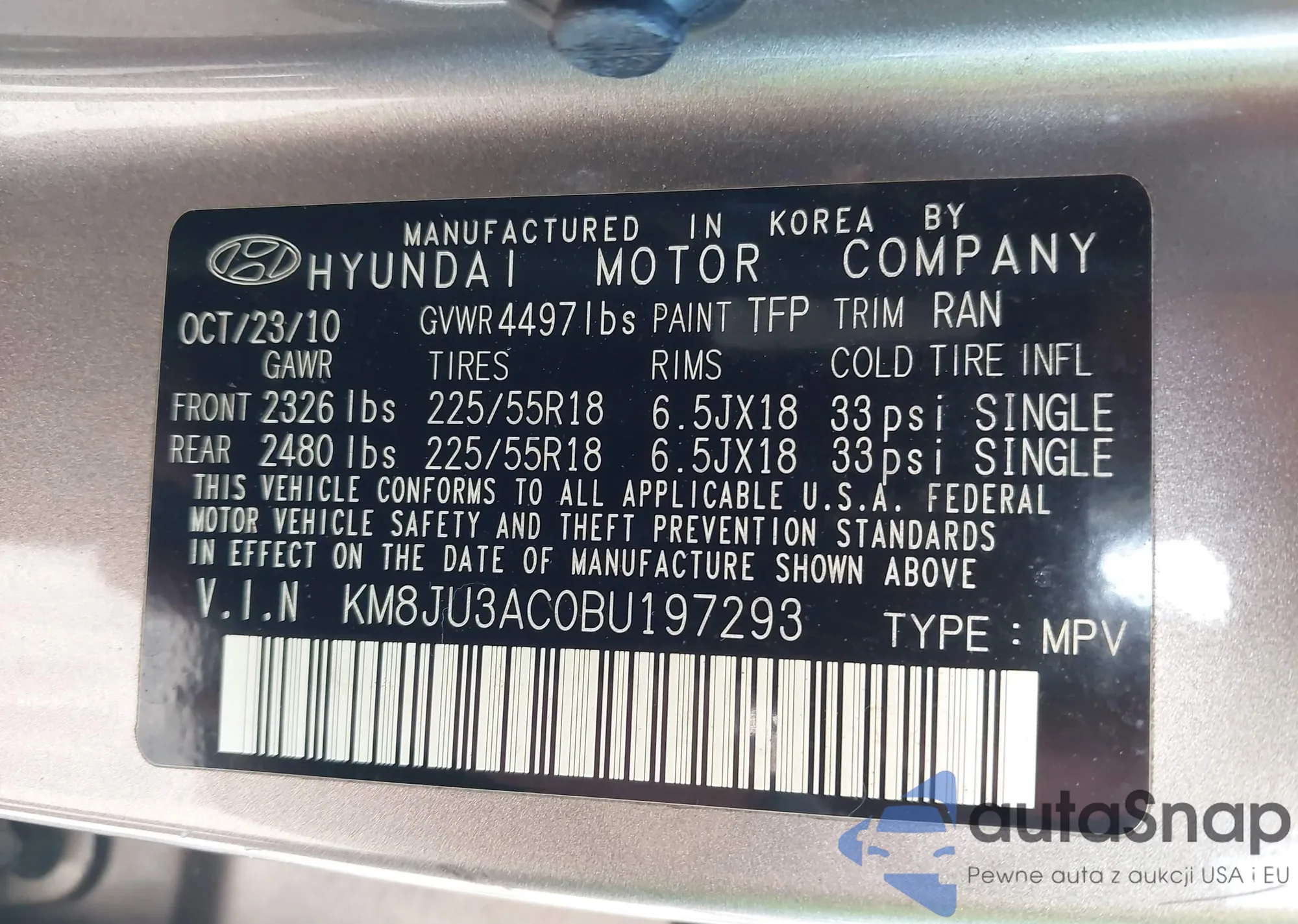 VIN: KM8JU3AC0BU197293