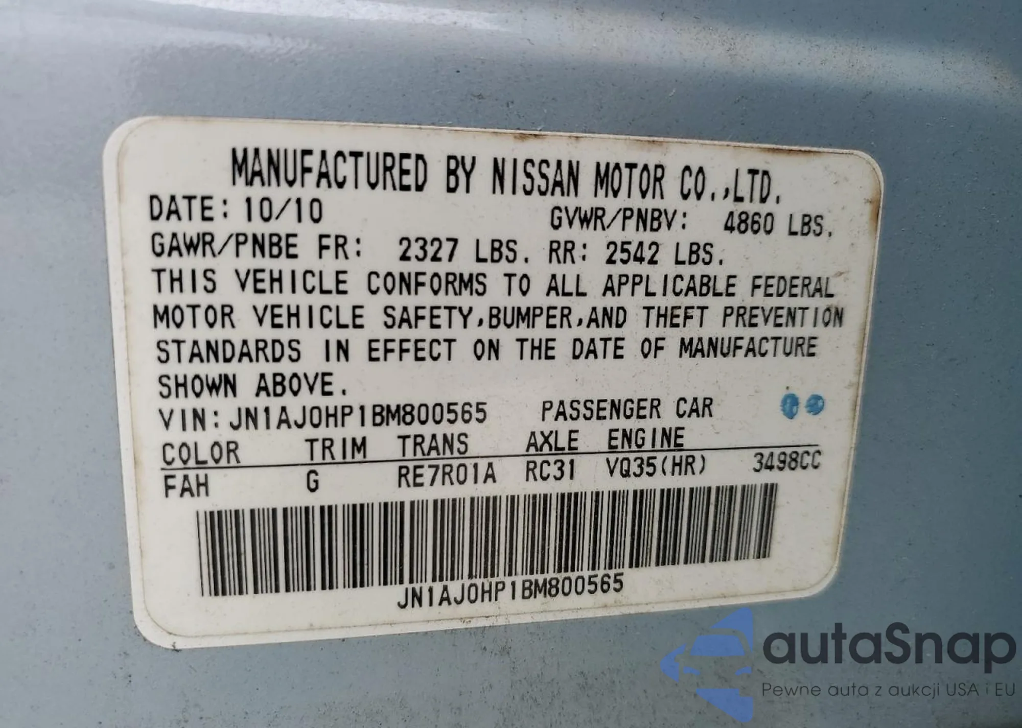VIN: JN1AJ0HP1BM800565