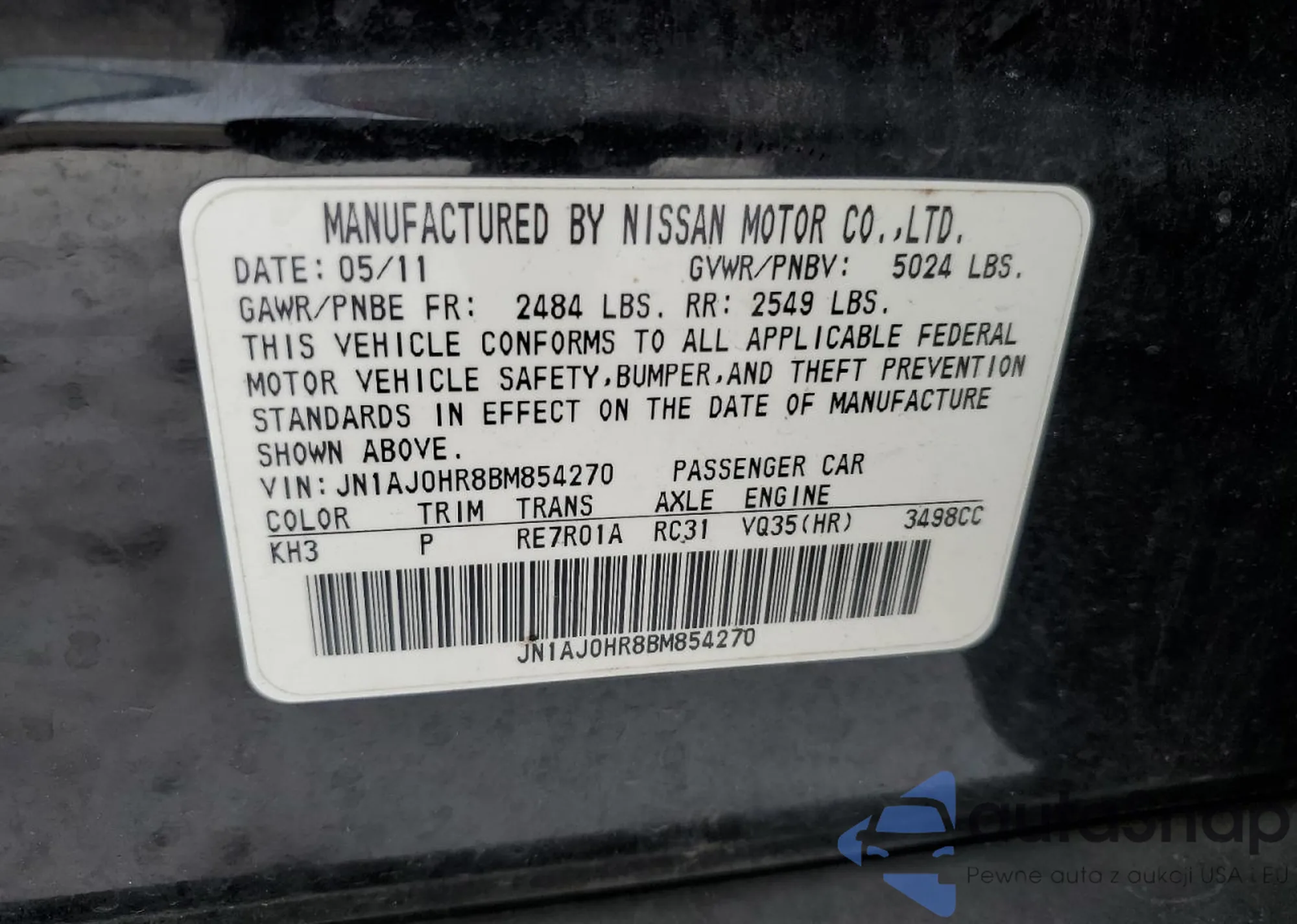 VIN: JN1AJ0HR8BM854270