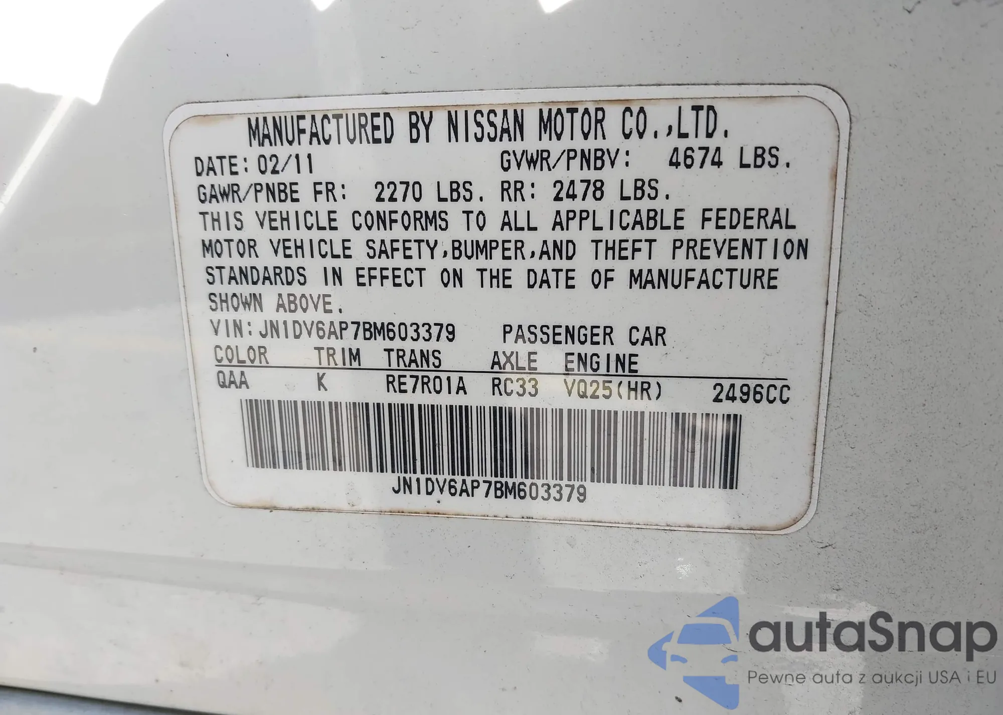 • VIN: JN1DV6AP7BM603379
