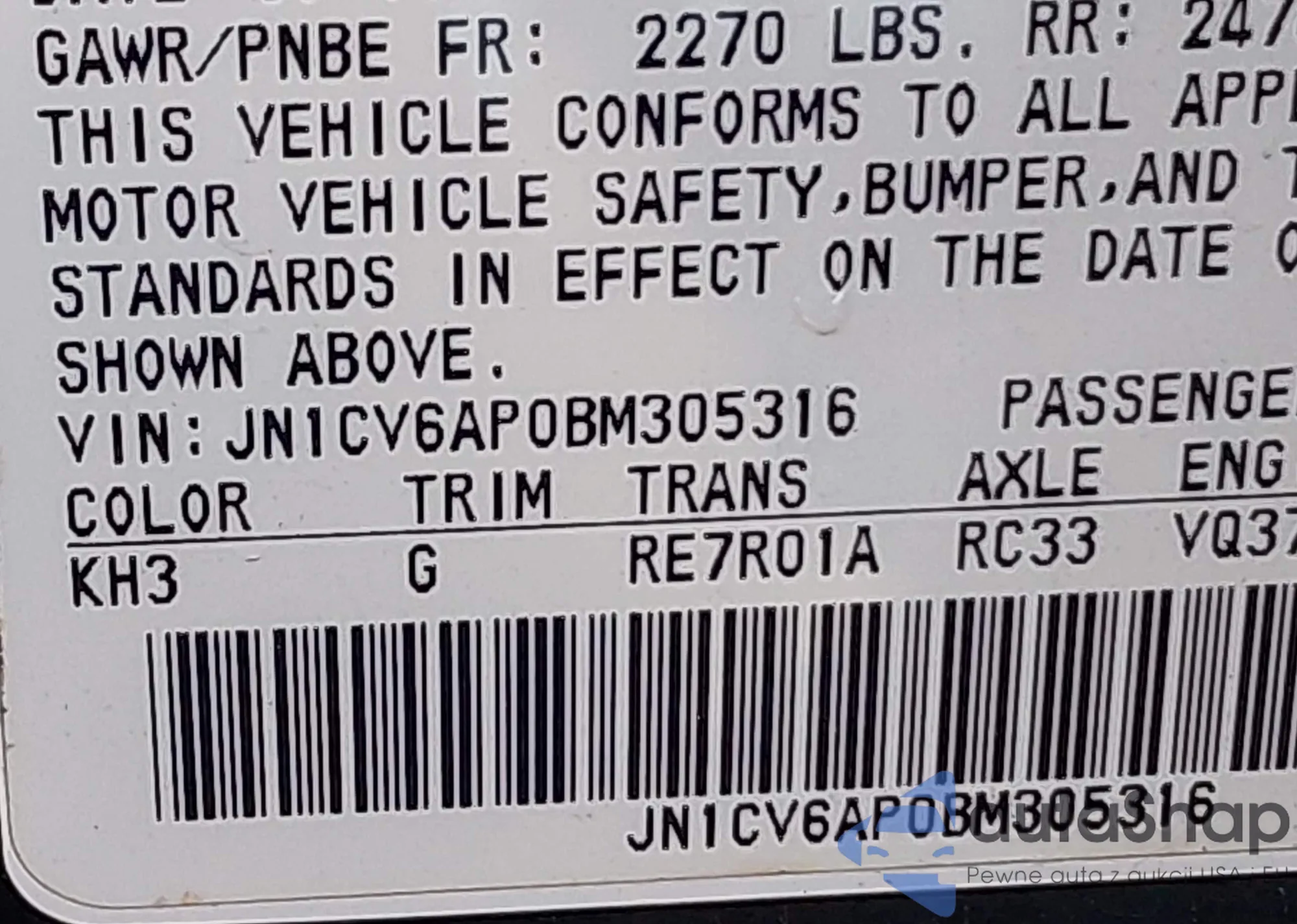 VIN: JN1CV6AP0BM305316