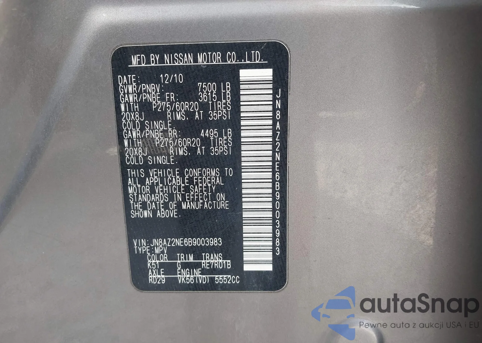 VIN: JN8AZ2NE6B9003983