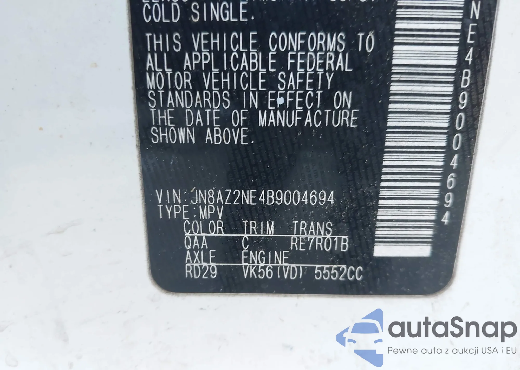 VIN: JN8AZ2NE4B9004694