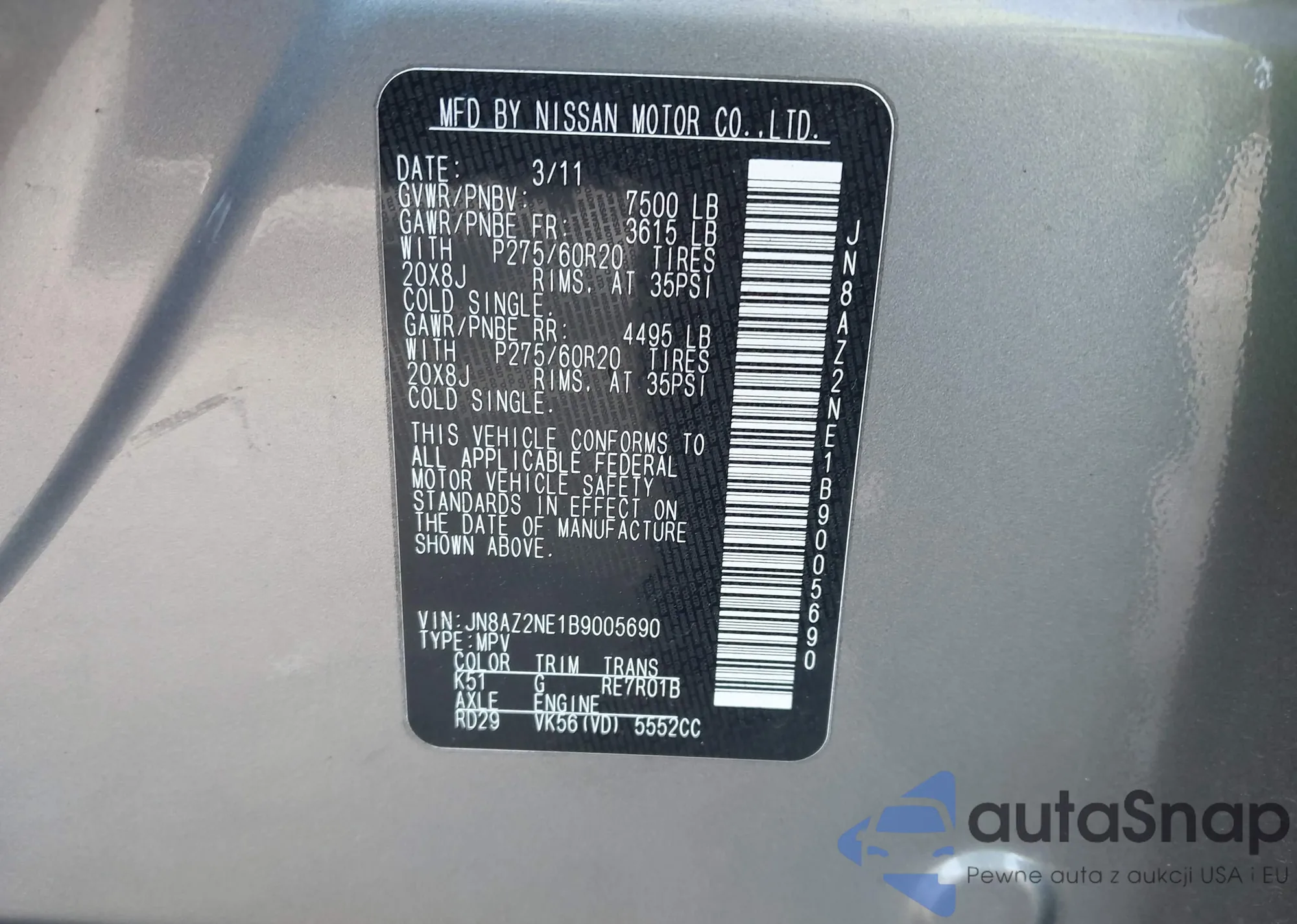 VIN: JN8AZ2NE1B9005690