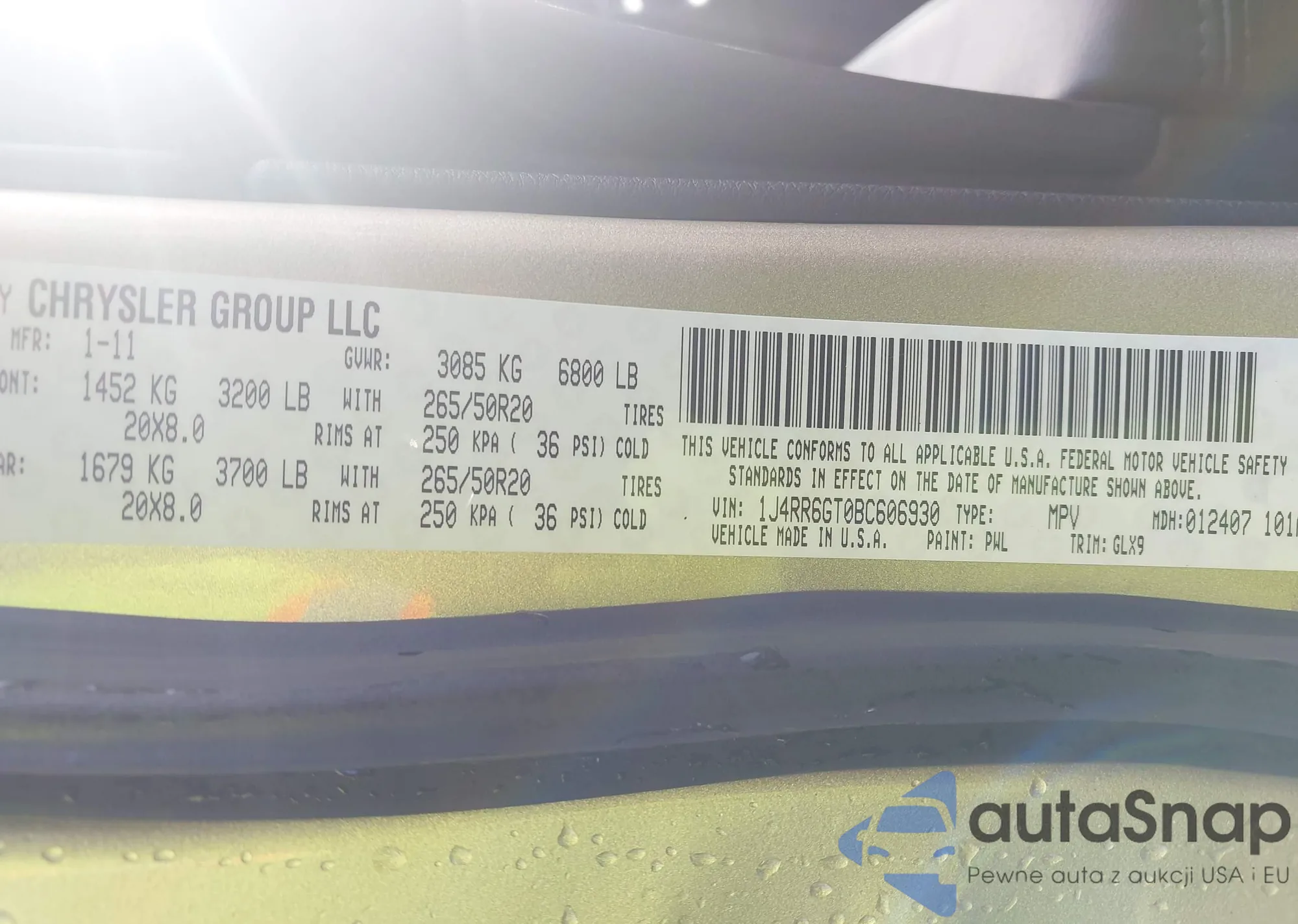 VIN: 1J4RR6GT0BC606930