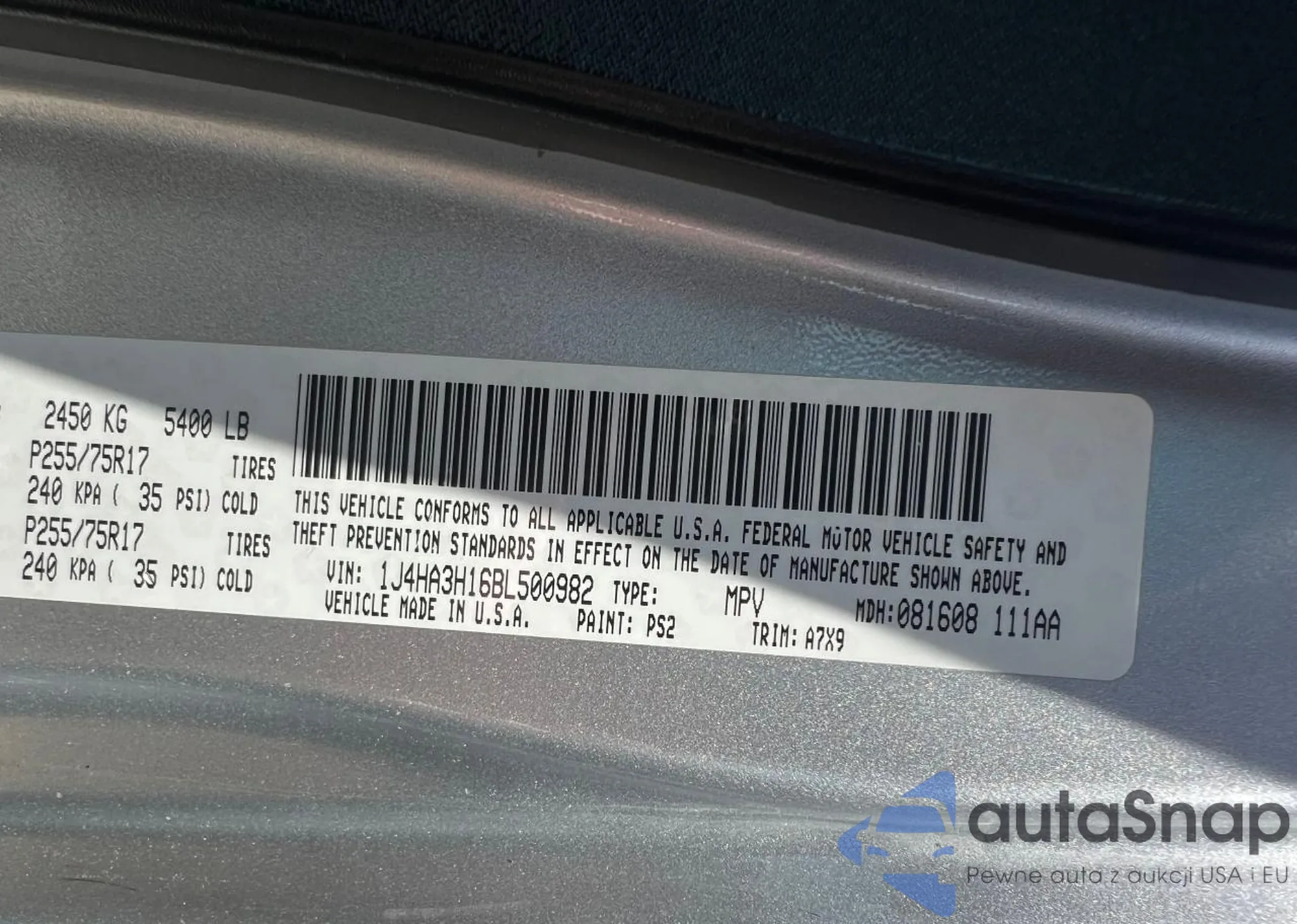 VIN: 1J4HA3H16BL500982