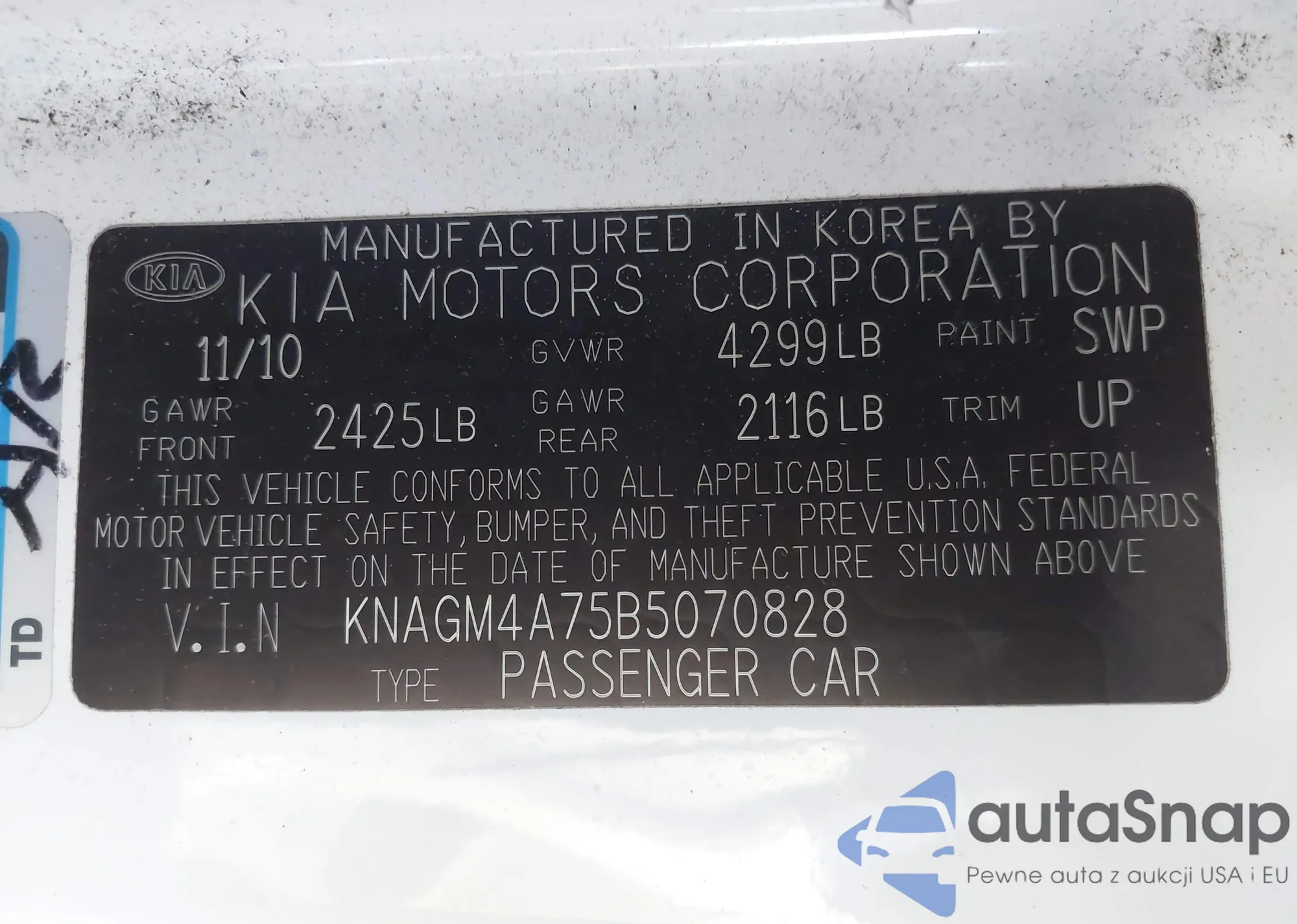 VIN: KNAGM4A75B5070828