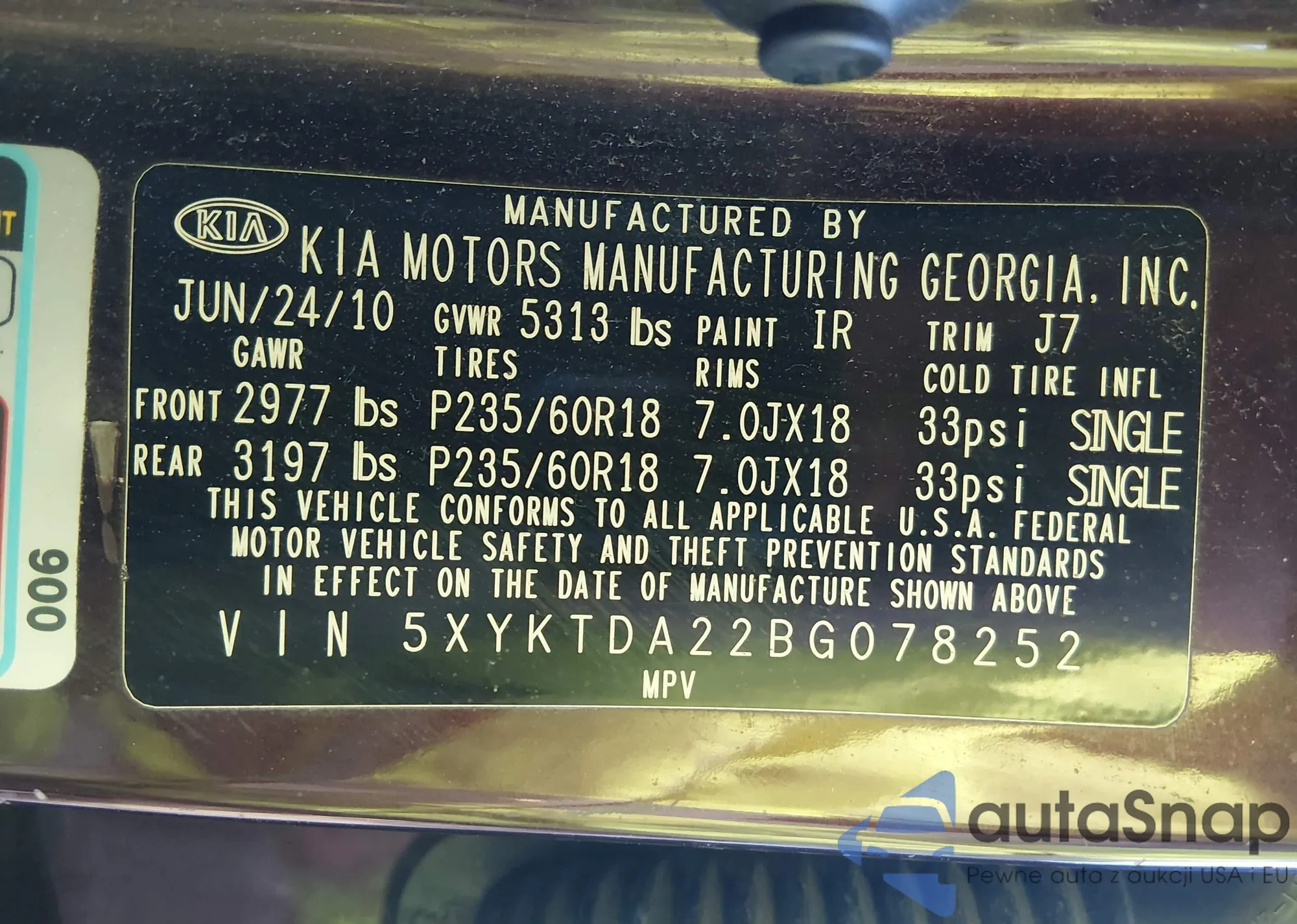 The car Kia Sorento 2011 (VIN 5XYKTDA22BG078252) is sold by an unverified seller. We recommend checking the Carfax report and confirming registration possibilities before purchase.