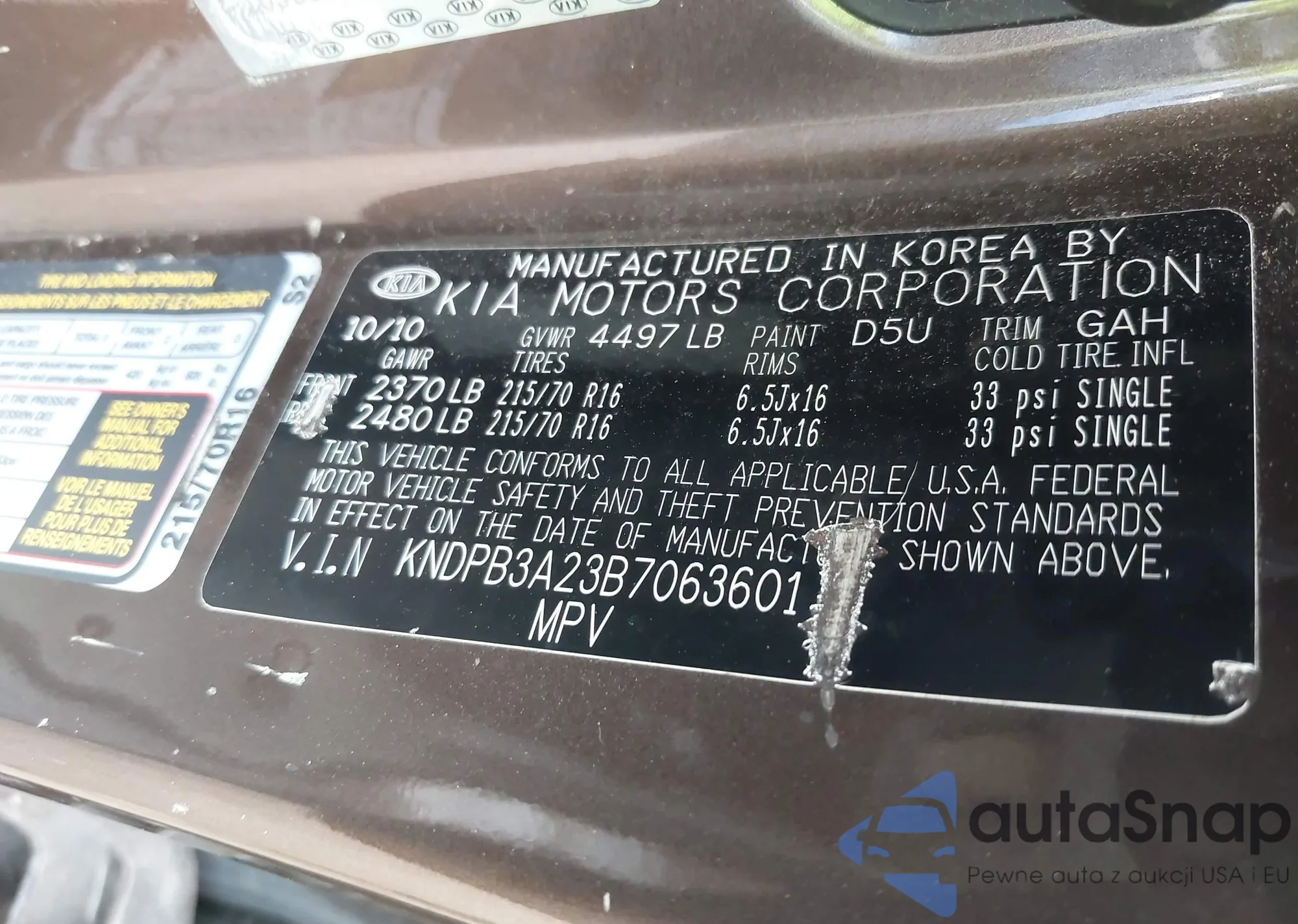 VIN: KNDPB3A23B7063601
