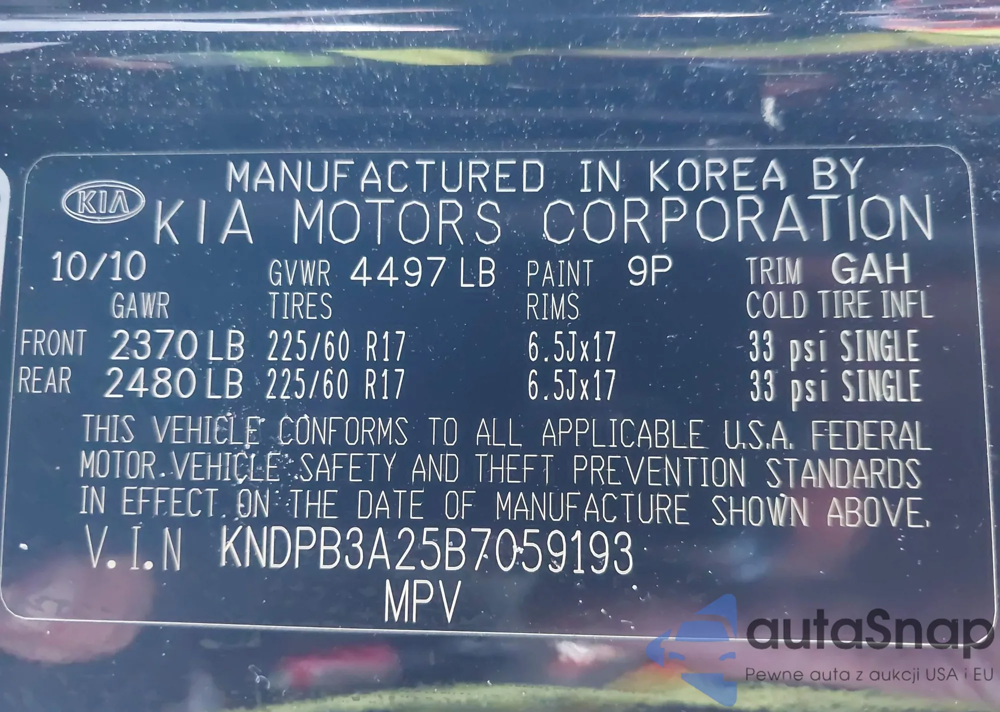 VIN: KNDPB3A25B7059193