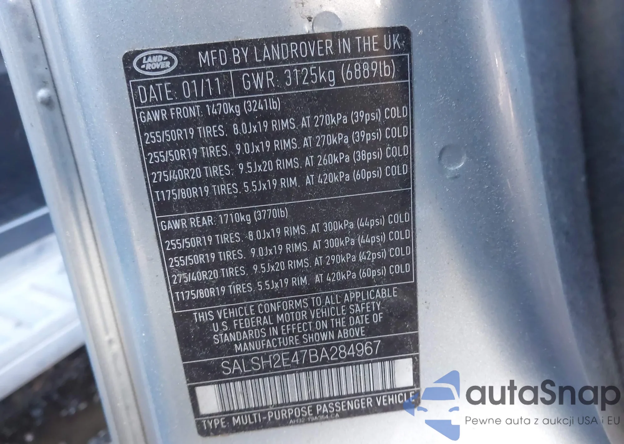 • VIN: SALSH2E47BA284967