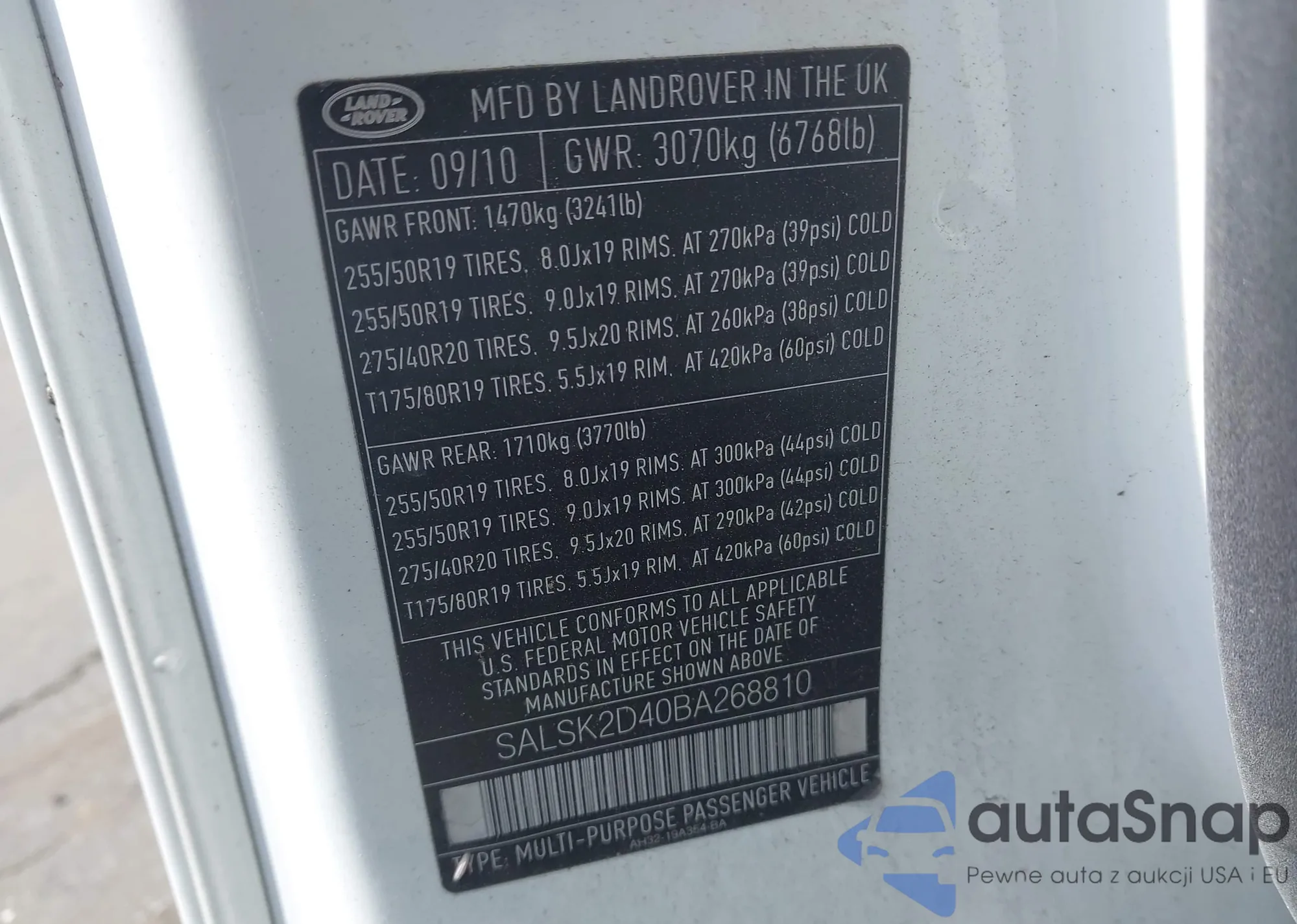 The car Land Rover Range Rover Sport 2011 (VIN SALSK2D40BA268810) is sold by an unverified seller. We recommend checking the Carfax report and confirming registration possibilities before purchase.