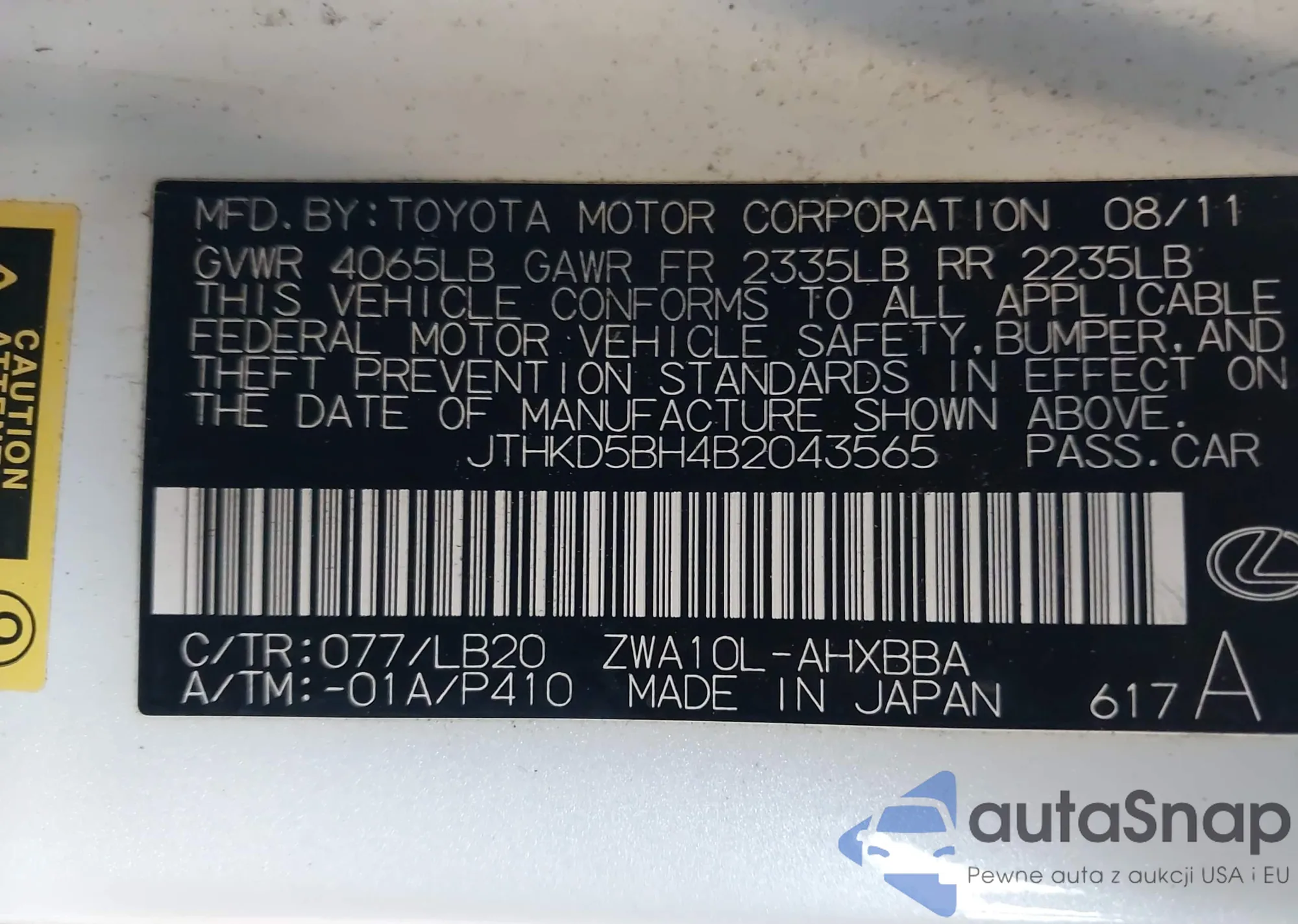 Make: 2011 Lexus Ct 200H Pr...
