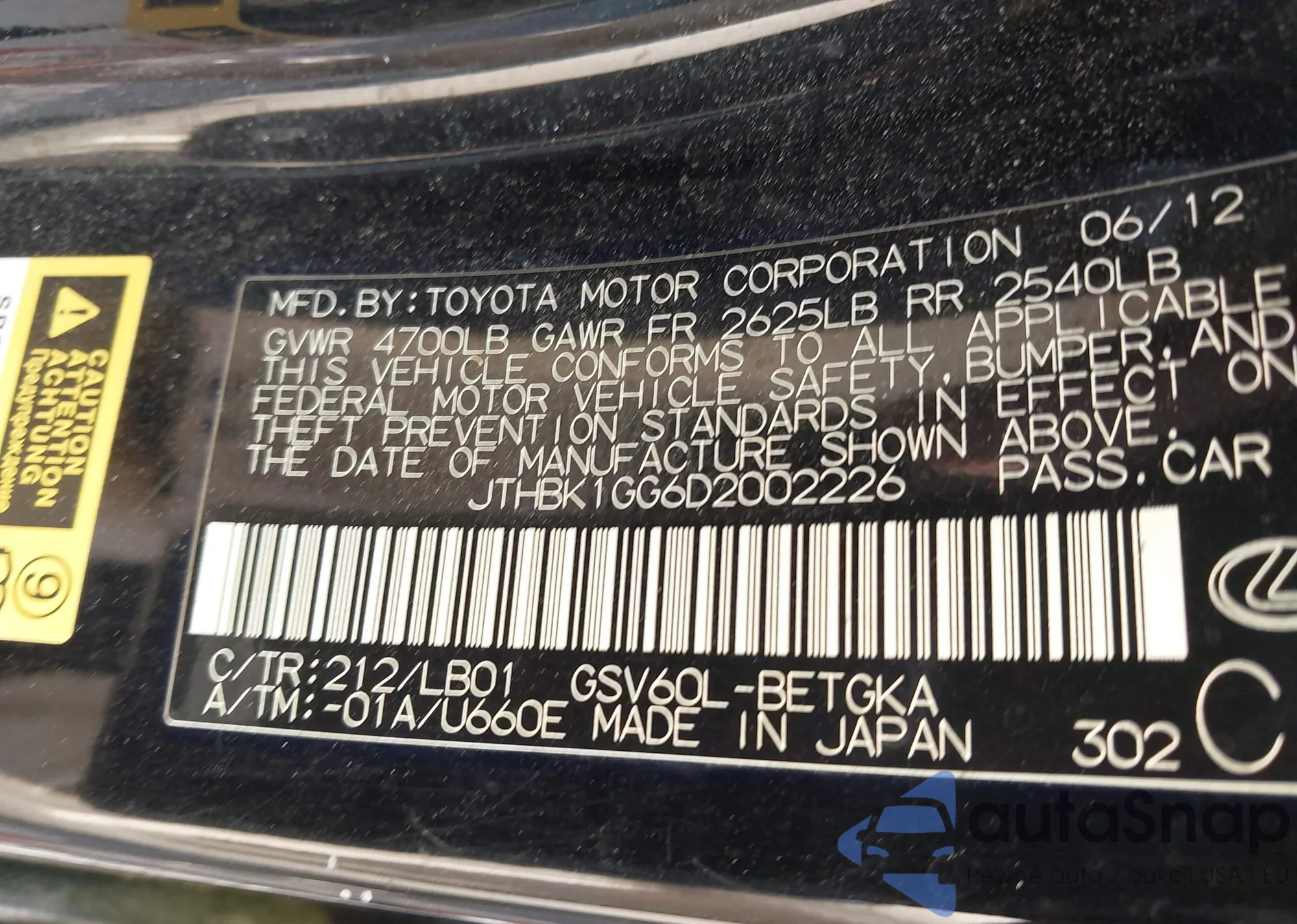 • VIN: JTHBK1EG6B2002226