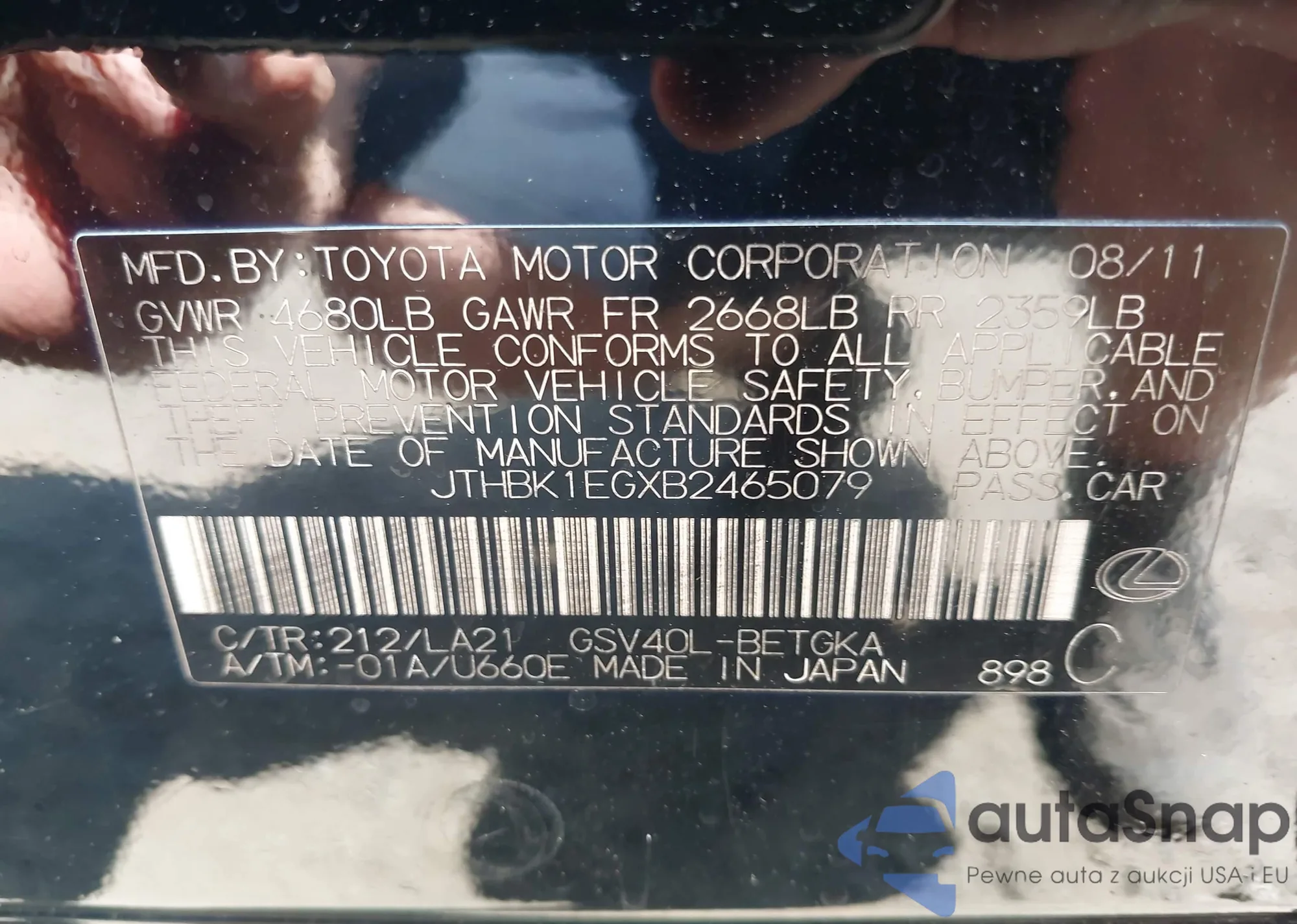VIN: JTHBK1EGXB2465079