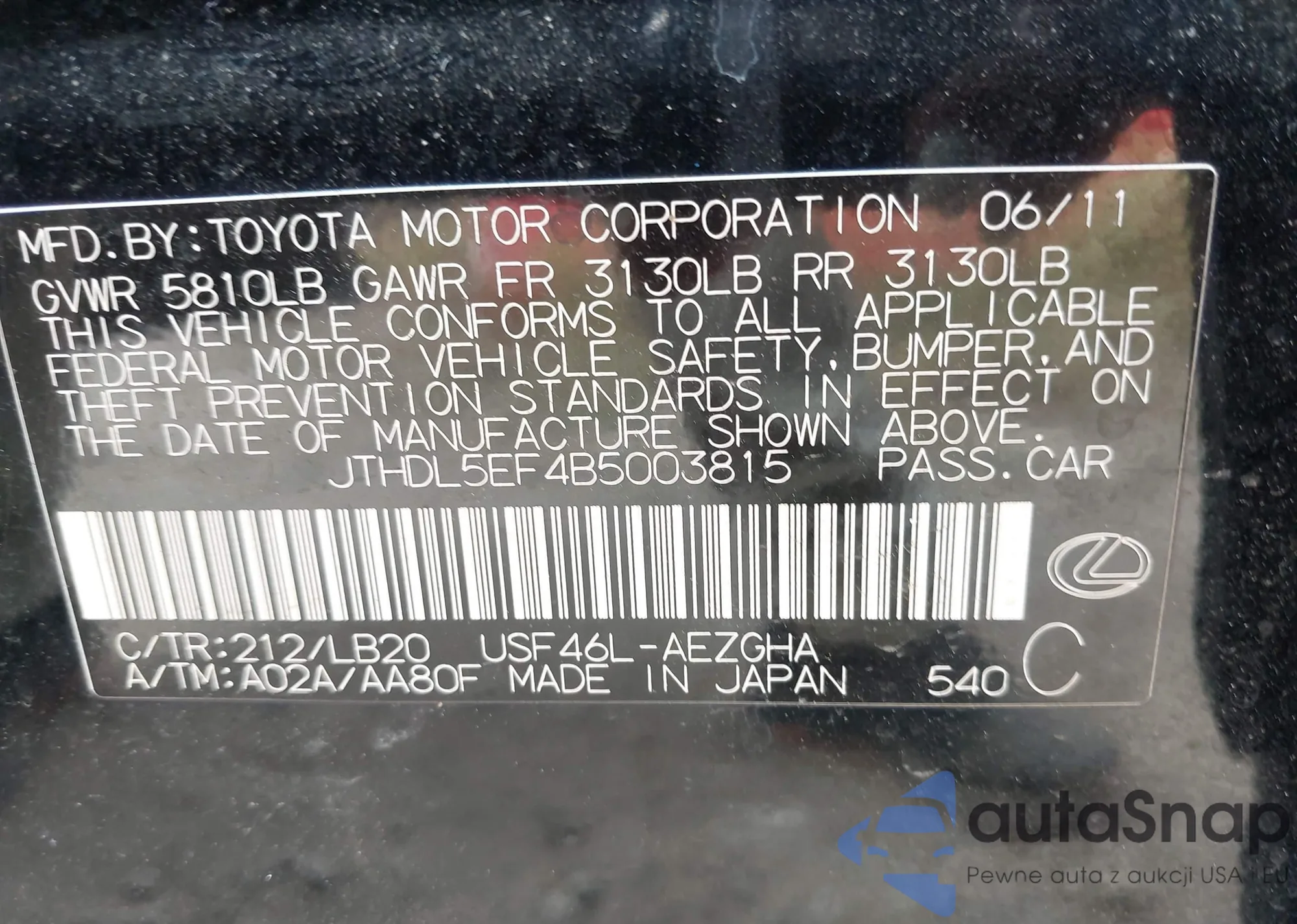 VIN: JTHDL5EF4B5003815