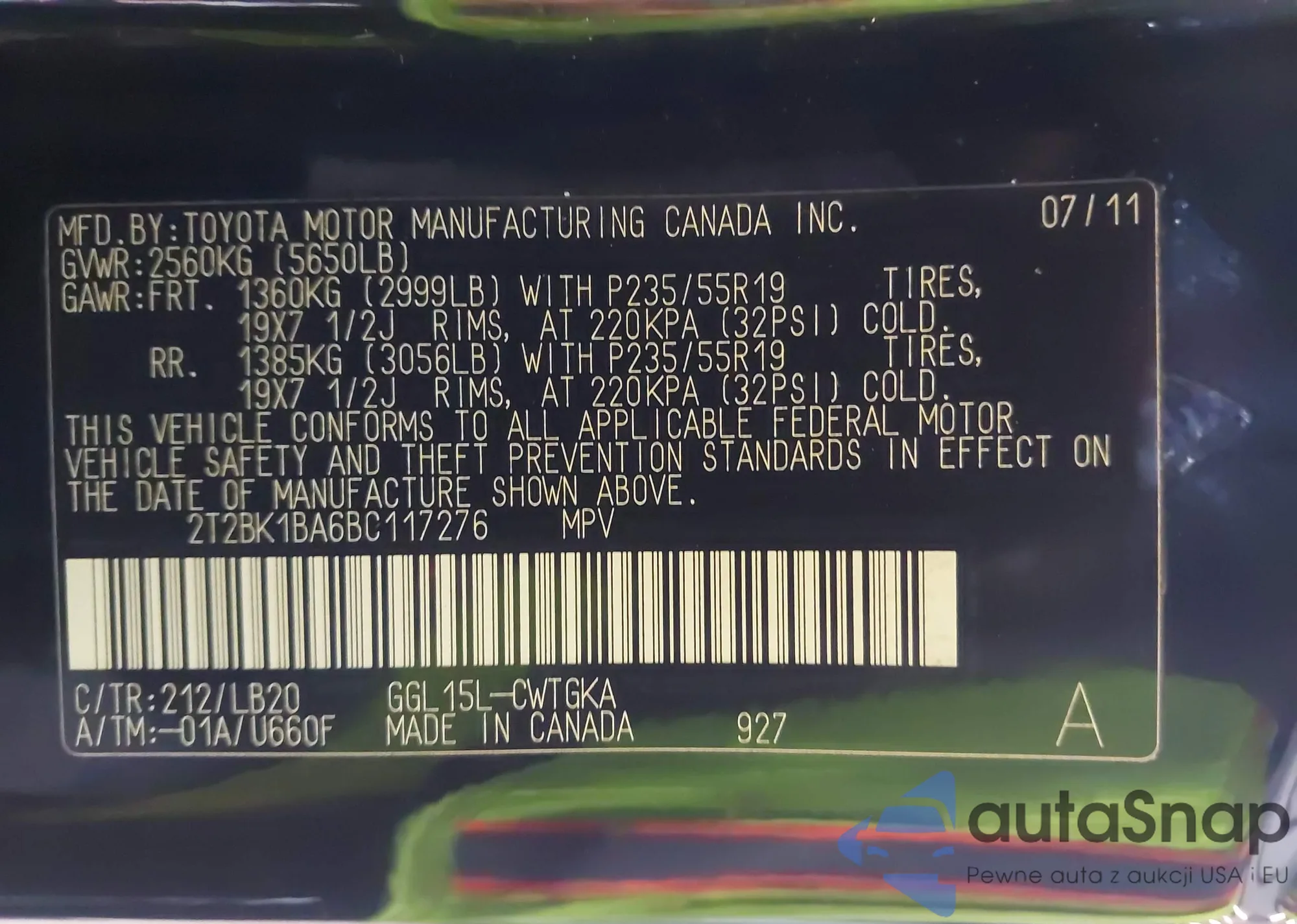 VIN: 2T2BK1BA6BC117276